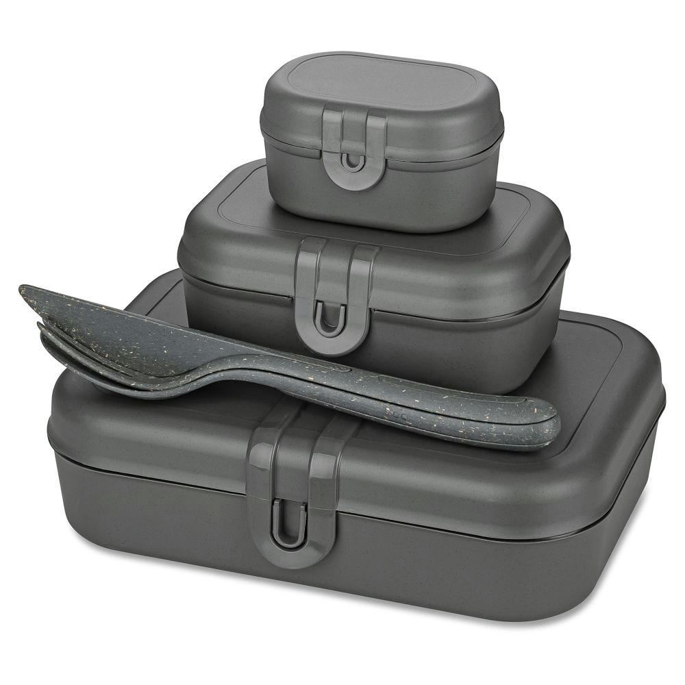 Meal Prep ist Kult und Lunchboxen die neuen It-Pieces. Selbstgemachtes Essen für unterwegs ist in und schont dazu die Umwelt, denn man vermeidet jede Menge Einwegverpackungen. Mit PASCAL READY gibt es nun das intelligente Geschirr zum Mitnehmen und Genießen. Das System ist gut durchdacht, denn die drei Boxen lassen sich passgenau ineinander schachteln. So werden Salat, Wraps, Obst, Nüsse, Gemüsesticks und Croutons sauber voneinander getrennt und das Essen bleibt appetitlich bis zum Verzehr. Das kompakte KLIKK Besteck findet in der großen Box seinen Platz und rundet das Lunchbox-Set perfekt ab. Durch das modulare System lässt sich die eigene Bentobox jeden Tag neu konfigurieren und dem jeweiligen Rezept anpassen.