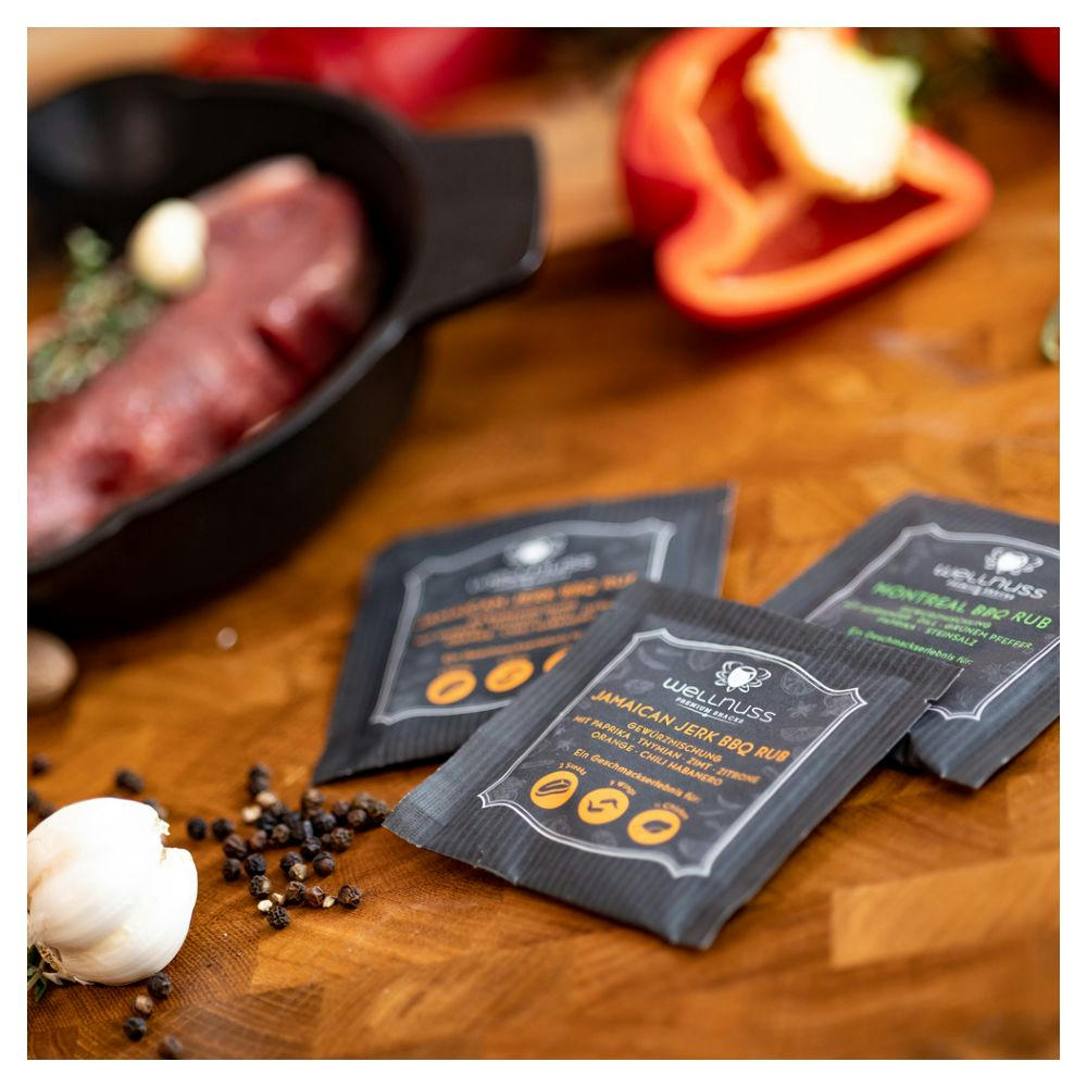 Der perfekte portooptimierte Werbeartikel für die Grillsaison oder Weihnachtszeit. Wählen Sie aus den folgenden Gewürzen : Jamaican Jerk BBQ Rub, Montreal BBQ Rub, Fränkischer BBQ Rub, Glühweingewürz oder Lebkuchengewürz. Preis inkl. individuell bedrucktem 4c-Etikett.