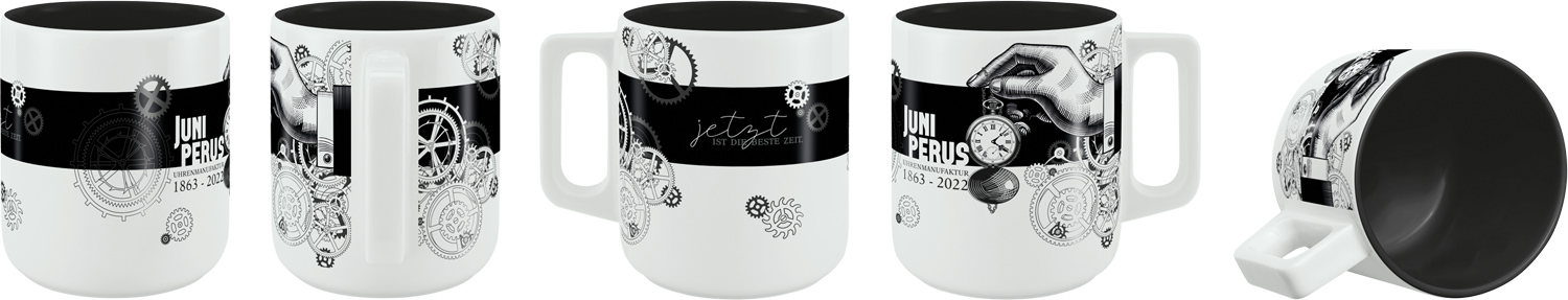Transfer Druck als Teil- und Volldekor, Relief Weiß Druck (partiell erhabener Druck), Matt & Glanz Druck, Edelmetalldruck, Effektpigment Druck, Gravur, Hydrolack (farbige Lackierung), Softtouch, Personalisierung, Gastro Spritzung und Druck