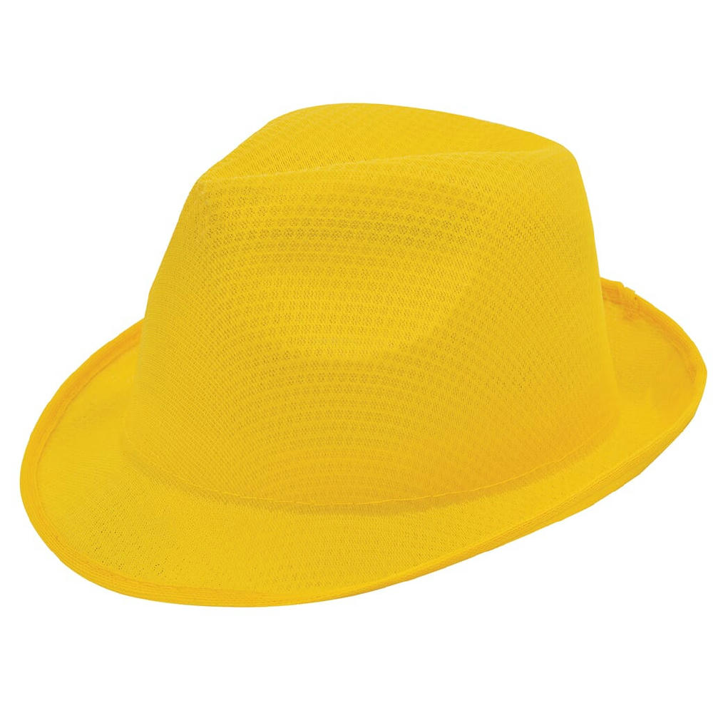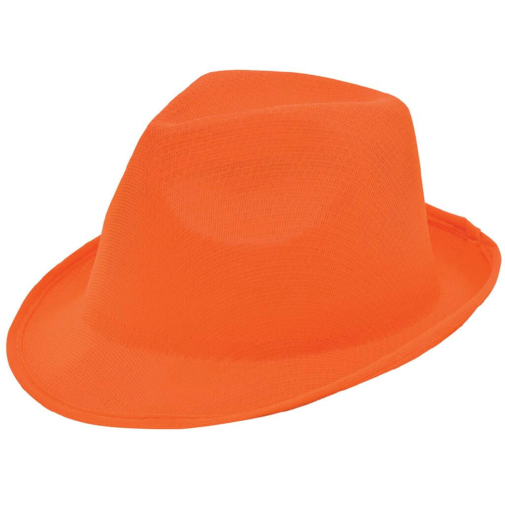 Der Promo Mafia Hut ist ein tolles und vor allem preiswertes Werbegeschenk, vor allem bei großen Einkaufsmengen. Ideal passt der Hut bei einer Kopfgröße von circa 58 cm. Passend zum Hut gibt es ein schickes, farbiges Hutband (Artikel 2071), was nach Ihren Wünschen bedruckt werden kann. Alternativ kann auch der Hut selbst mit einem Transferdruck veredelt werden. Das modische Produkt aus Polyester ist ein tolles Kundengeschenk, denn es fällt auf und hat Stil. So einen schicken Hut hat nicht jeder!