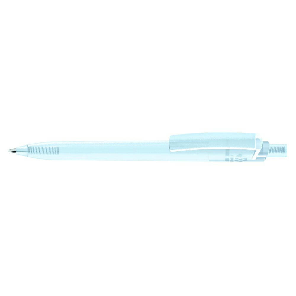 Druckkugelschreiber aus recyceltem PET-Material (hergestellt in Europa) mit transparent gefrostetem Gehäuse, Clip und Drücker.