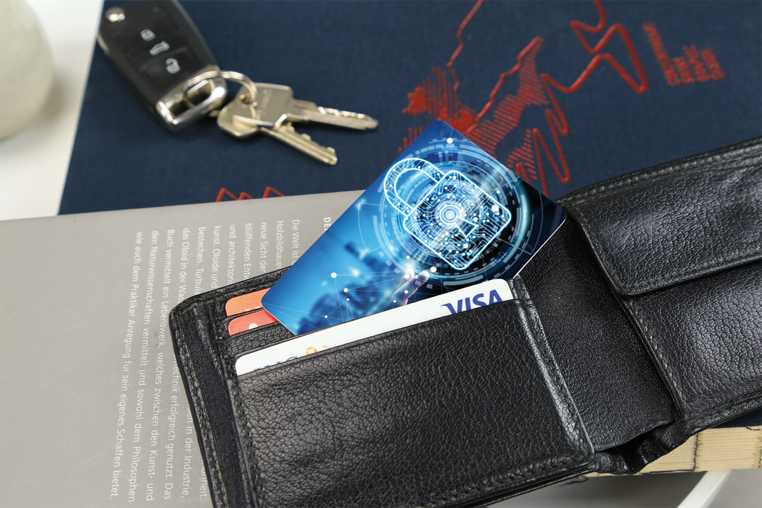 Schützt Ihren gesamten Geldbeutel vor rFID – NFC – 13.56 Mhz Ausspähversuchen. Die Karte baut ein elektronisches Schutzfeld auf, das alle 13.56 Mhz Karten (Kreditkarten, EC-Karten, Personalausweis etc.) für etwaige Scanner unsichtbar macht. Preis ab 500 St. inklusive beidseitigem Digitaldruck.