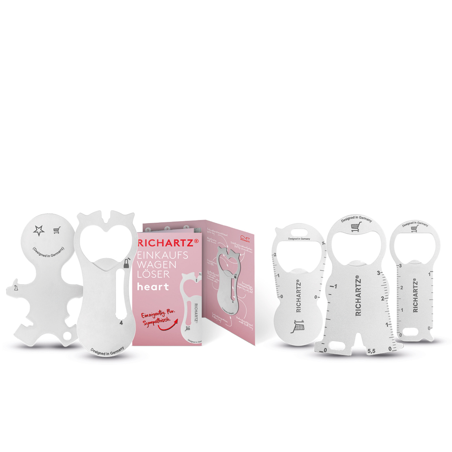Durch die Kombination aus Einkaufswagenlöser, Flaschenöffner & Co., werden sie schnell zum unverzichtbaren Begleiter am Schlüsselbund. Unterschiedliche Formgebungen: von technisch bis sympathisch. Ein idealer Mailingartikel für jede Branche und jeden Anlass. Preis inkl. indiv. 4/4-c bedruckbarer Trägerkarte und inkl. Lasergravur auf dem Tool.