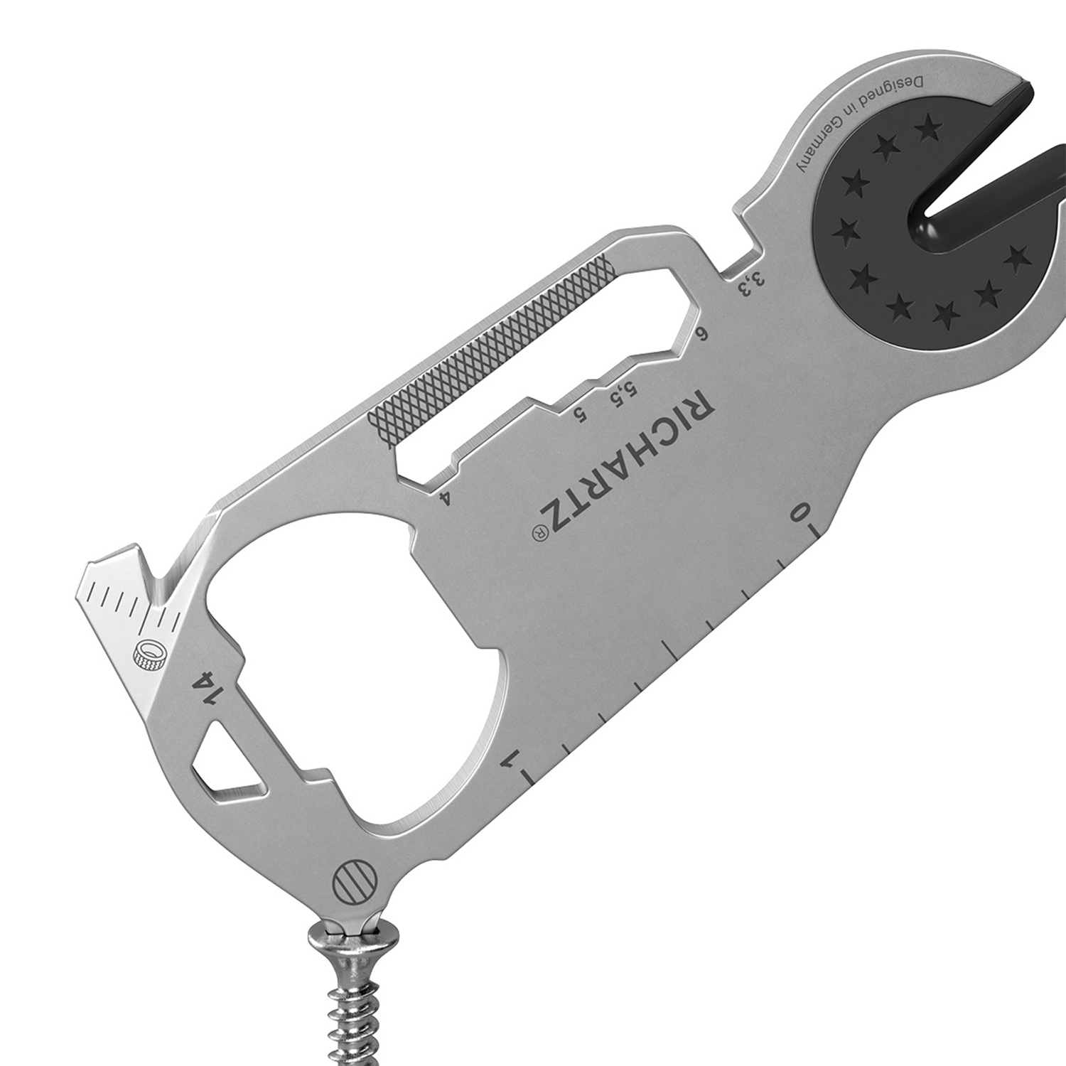 Das kleine, kompakte Multifunktionstool von RICHARTZ® mit dem nützlichen Zeckenentferner ist aus hochwertigem, matt gestrahltem Edelstahl gefertigt. Ein unentbehrlicher Begleiter, der an jeden Schlüsselbund passt! 20 Funktionen auf kleinstem Raum lassen kaum Wünsche offen.