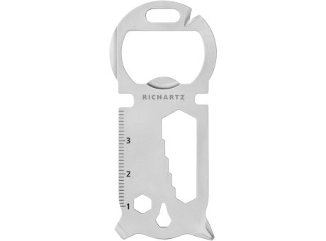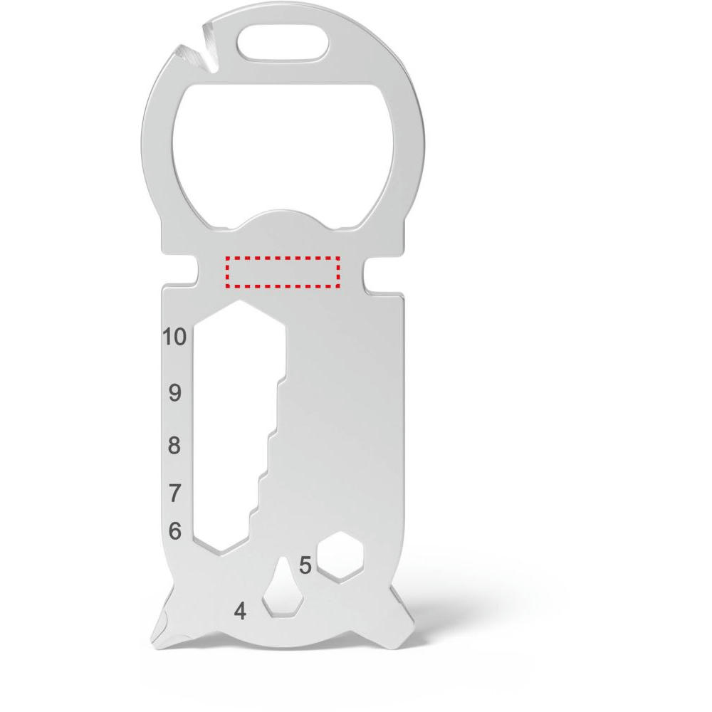 Das kompakte Multifunktionstool ist ein unentbehrlicher Begleiter und passt an jeden Schlüsselbund! 16 Funktionen: Kapselheber, kleiner und großer Schlitzschraubendreher, Kreuzschlitzschraubendreher, Kabelabzieher, zwei Fahrradspeichenschlüssel, sieben Sechskantschlüssel, Zentimetermaß, Nagelzieher. Ab 250 St. indiv. Verpackungsdruck und Lasergravur auf Produkt gegen Aufpreis möglich.