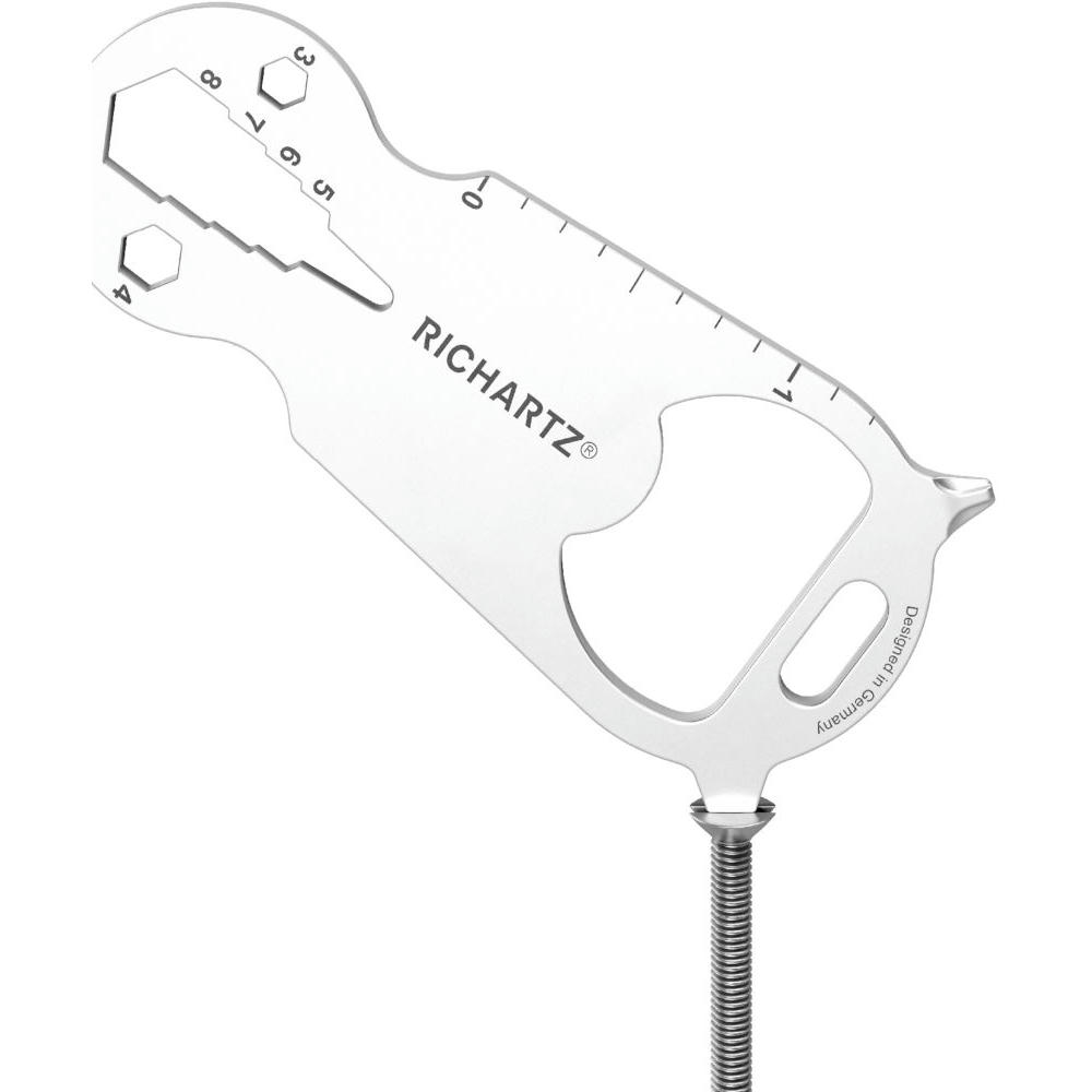 Das kompakte Multifunktionstool ist ein unentbehrlicher Begleiter und passt an jeden Schlüsselbund! 14 Funktionen: praktischer Einkaufswagenlöser, Kapselheber, zwei Schlitzschraubendreher, Kreuzschraubendreher, sechs Sechskantschlüssel, Zentimetermaß, Inchmaß, Nagelzieher.