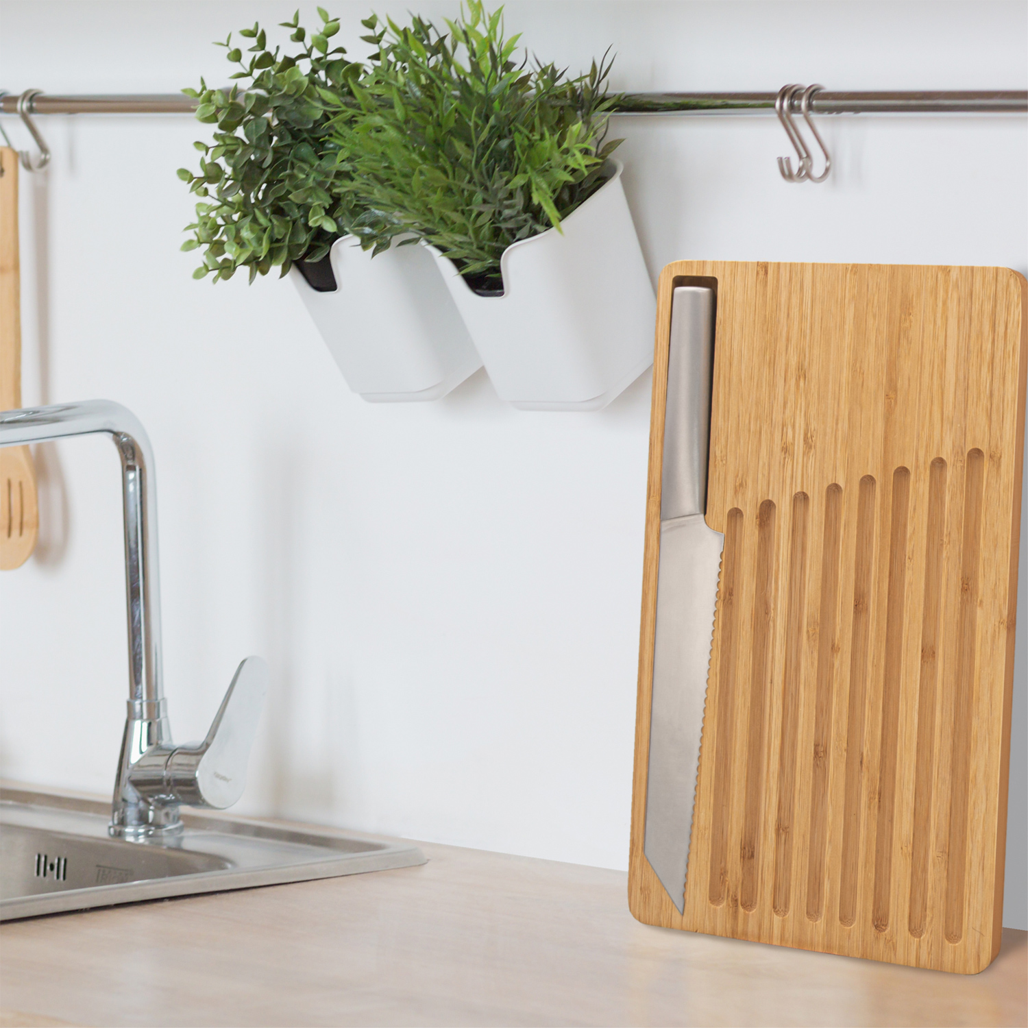 Das Küchenset kombiniert das hochwertige RICHARTZ Brotmesser mit einem Schneidbrett aus Holz. Zur Aufbewahrung findet das Brotmesser in der Griffmulde des Schneidbretts seinen Platz in welcher es magnetisch gehalten wird. ndiv. 4-c bedruckte Verpackung und Lasergravur auf Messer möglich.