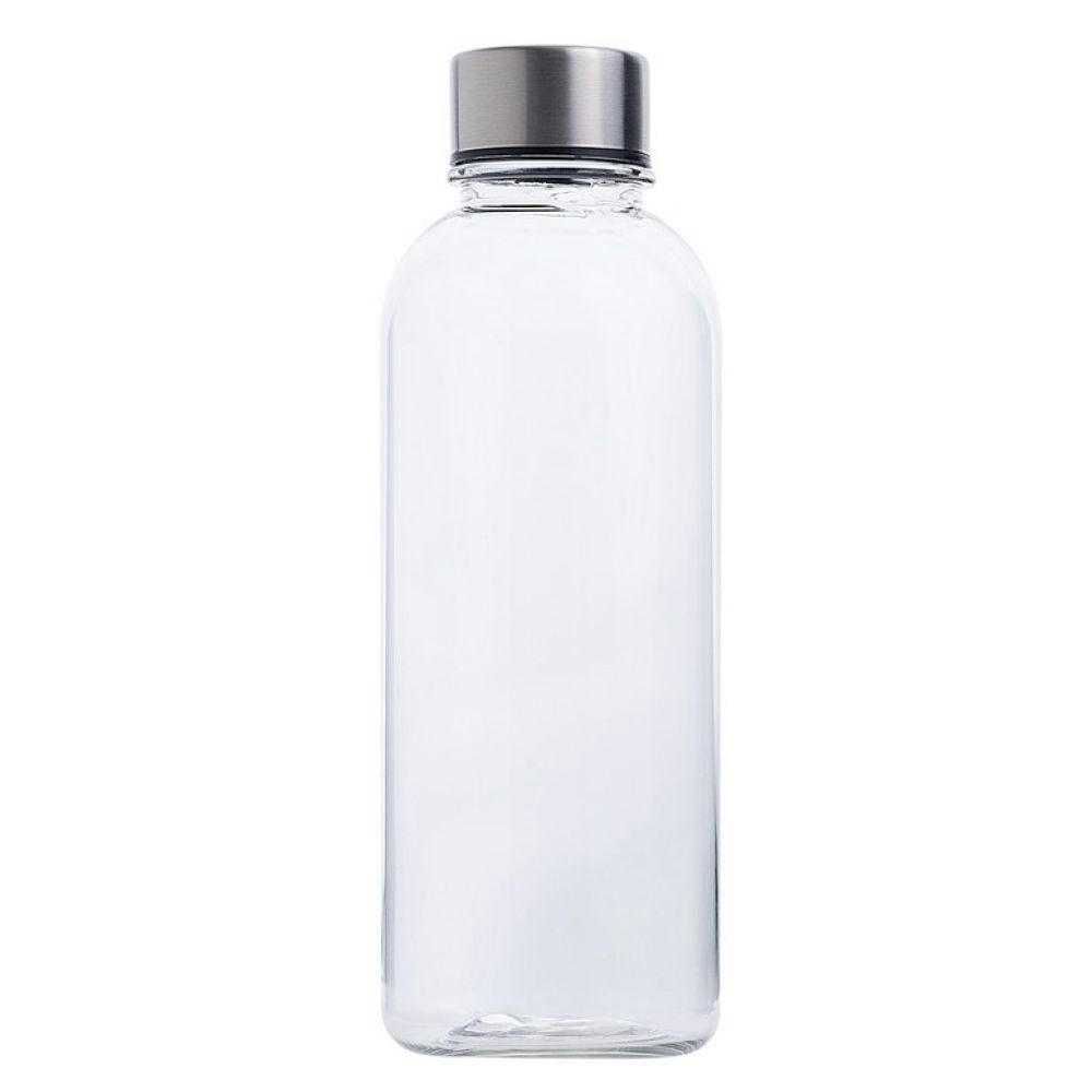 Flasche aus recyceltem PET mit Edelstahlverschluss.