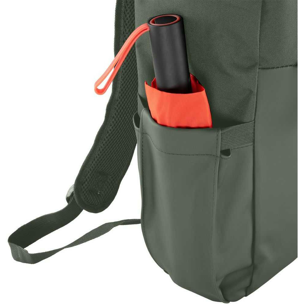 Dieser Rucksack besteht aus 300D rPET, 1mm matt PU und 210D rPET Innenfutter, was ihn sowohl umweltfreundlich als auch strapazierfähig macht. Mit einem Volumen von ca. 16 Litern und den kompakten Maßen bietet er ausreichend Platz für Ihre täglichen Essentials. Der Rucksack verfügt über ein Hauptfach mit Reißverschluss und X-Klickverschluss, eine Reißverschlussvortasche, eine Innentasche sowie ein gepolstertes Laptopfach für Geräte bis zu 16". Die verstellbaren, gepolsterten Schultergurte und der gepolsterte Rücken sorgen für hohen Tragekomfort. Zusätzlich bietet der Rucksack flexible Seitentaschen für Flaschen, eine Trolleyschlaufe, ein Geheimfach am Rücken und ein Smart Tracker Fach für zusätzliche Sicherheit. Ideal für Arbeit, Studium oder Reisen.