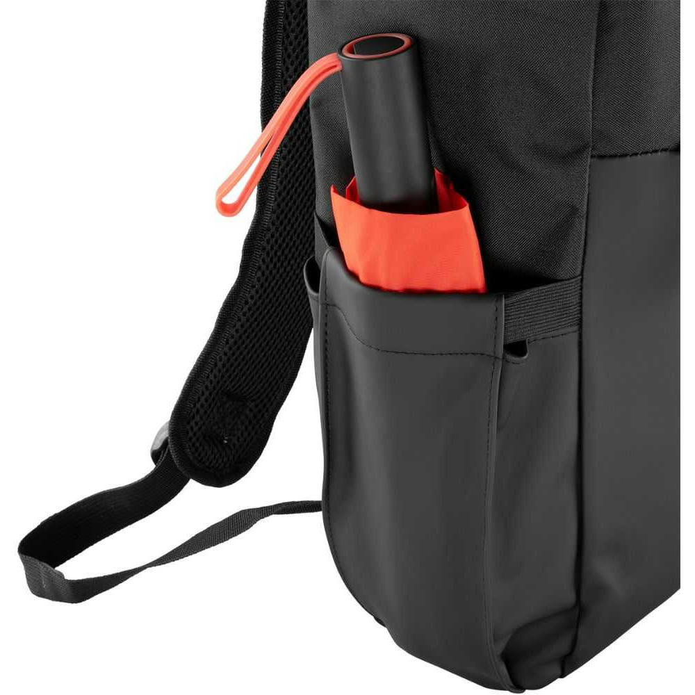 Hauptfach mit Reißverschluss und X-Klickverschluss, eine Reißverschlussvortasche, eine Innentasche sowie ein gepolstertes Laptopfach für Geräte bis zu 16". Verstellbare, gepolsterte Schultergurte, gepolsterter Rücken. Flexible Seitentaschen für Flaschen, eine Trolleyschlaufe, ein Geheimfach am Rücken und ein Air-Tag-Fach für zusätzliche Sicherheit. Ideal für Arbeit, Studium oder Reisen. Volumen: 16 Liter.