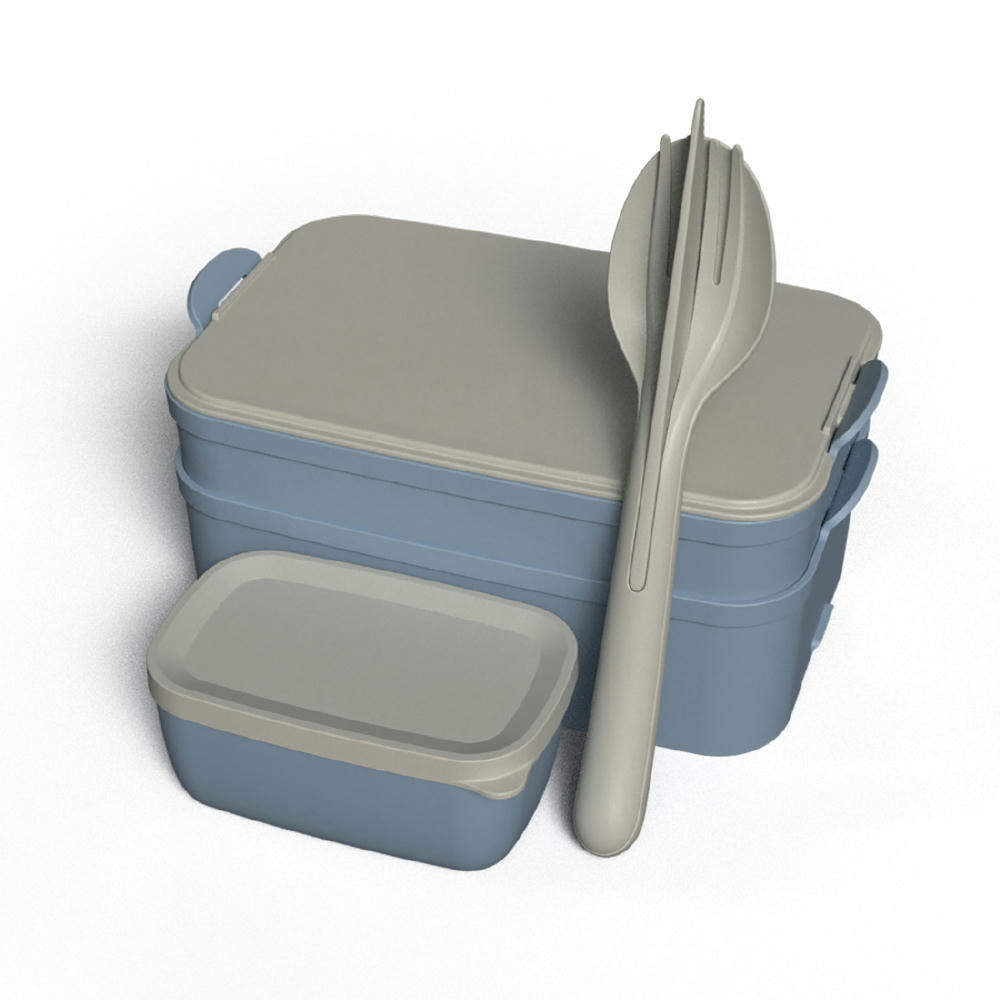 STAKK BENTOBOX READY passt einfach perfekt zu einem gesunden Lebensstil, denn sie bietet viel Platz für Brote, Salate und kleine Gerichte. Die Bentobox besteht aus zwei unterschiedlich großen Schalen mit Deckel und einem Besteckset. Durch den modularen Aufbau lässt sich das Mittagessen optimal trennen und alles bleibt bis zur Pause appetitlich frisch. Die Schalen können natürlich auch einzeln verwendet werden. Sie sind mikrowellengeeignet, ideal zum Aufwärmen der Mahlzeiten im Büro. Das kompakte Besteckset KLIKK ist die ideale Ergänzung, denn so kann man sein Mittagessen überall genießen.