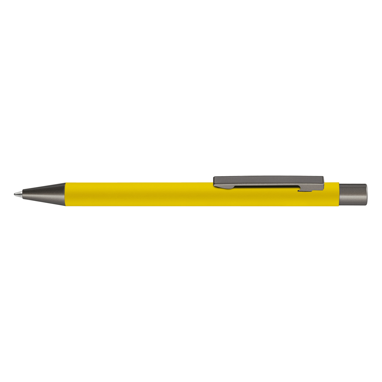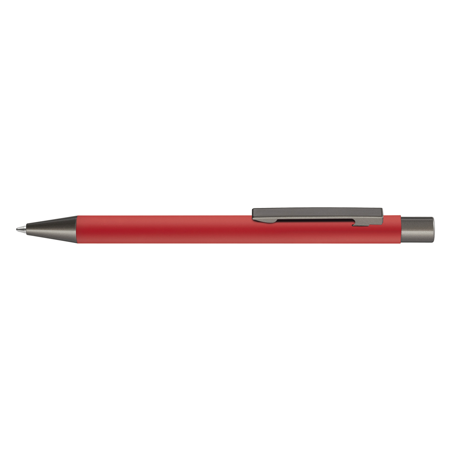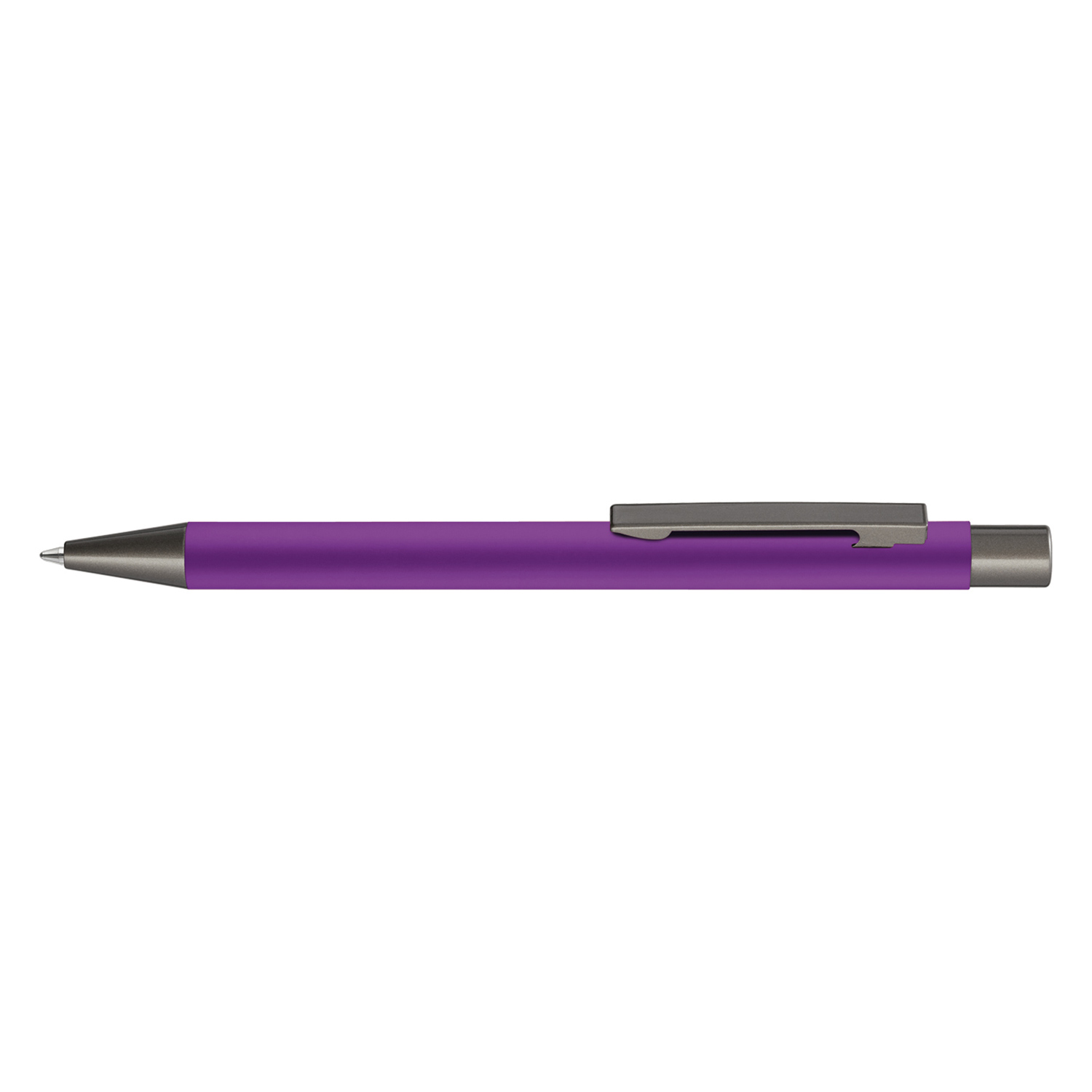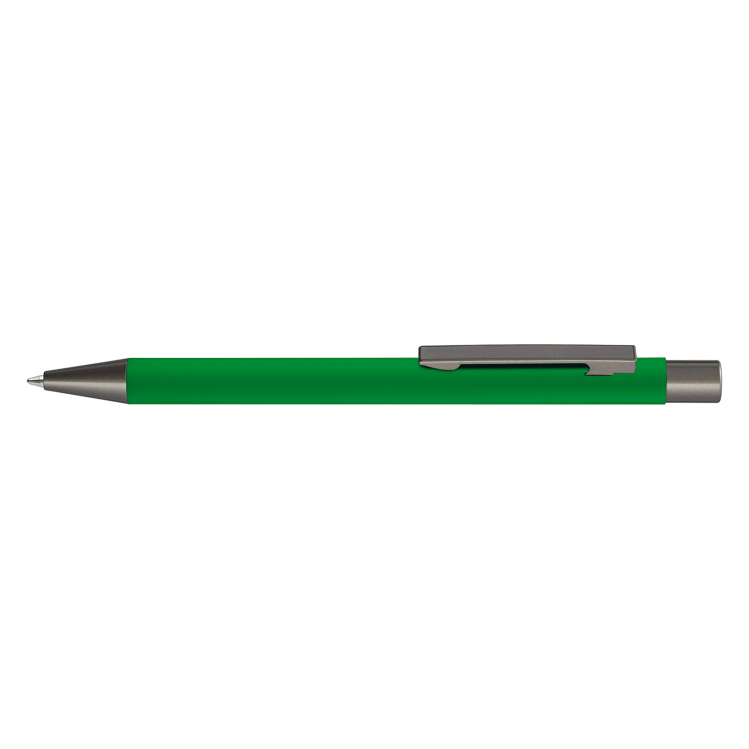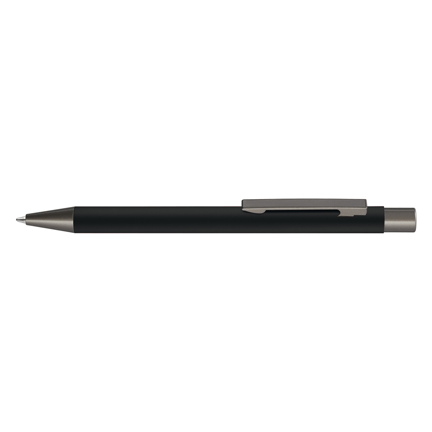 Metall-Druckkugelschreiber mit Softtouch-Gehäuse. Metallclip, Metallspitze und Drücker GUN metallic.