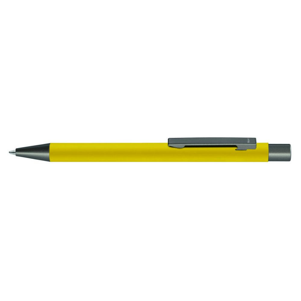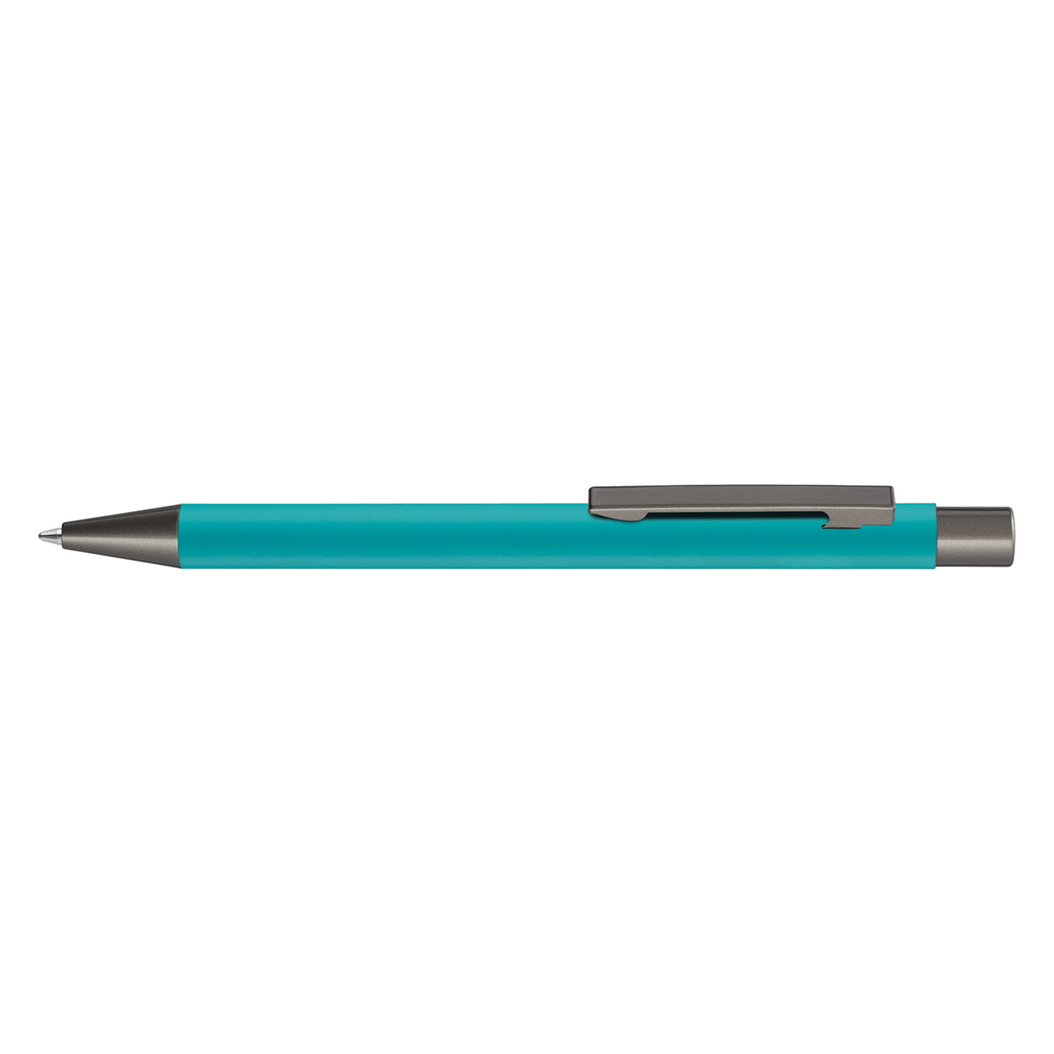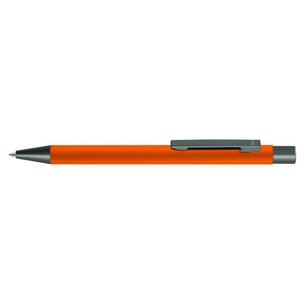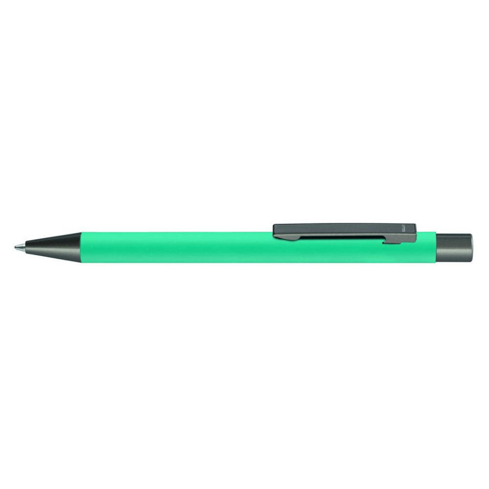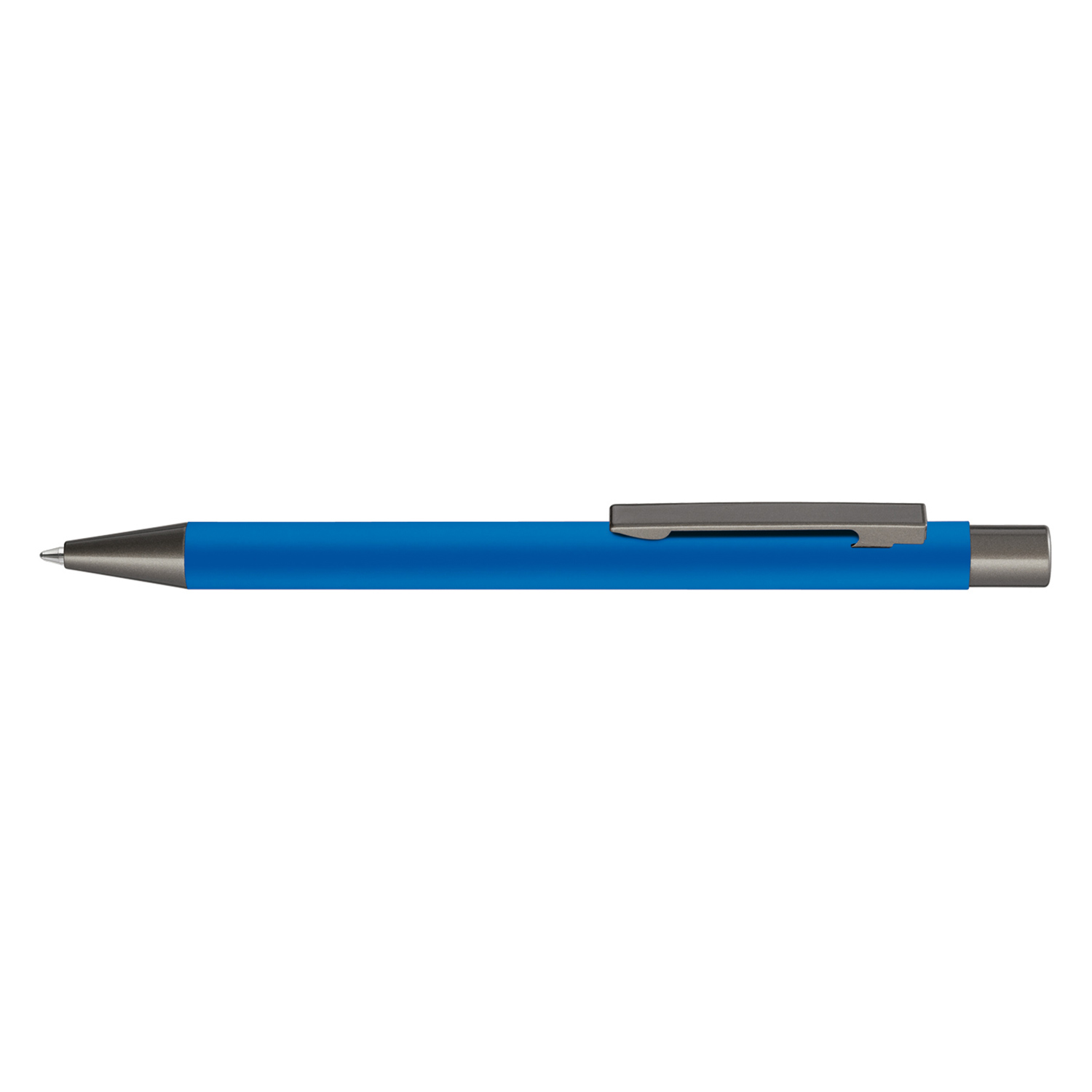 Metall-Druckkugelschreiber mit Softtouch-Gehäuse. Metallclip, Metallspitze und Drücker GUN metallic.