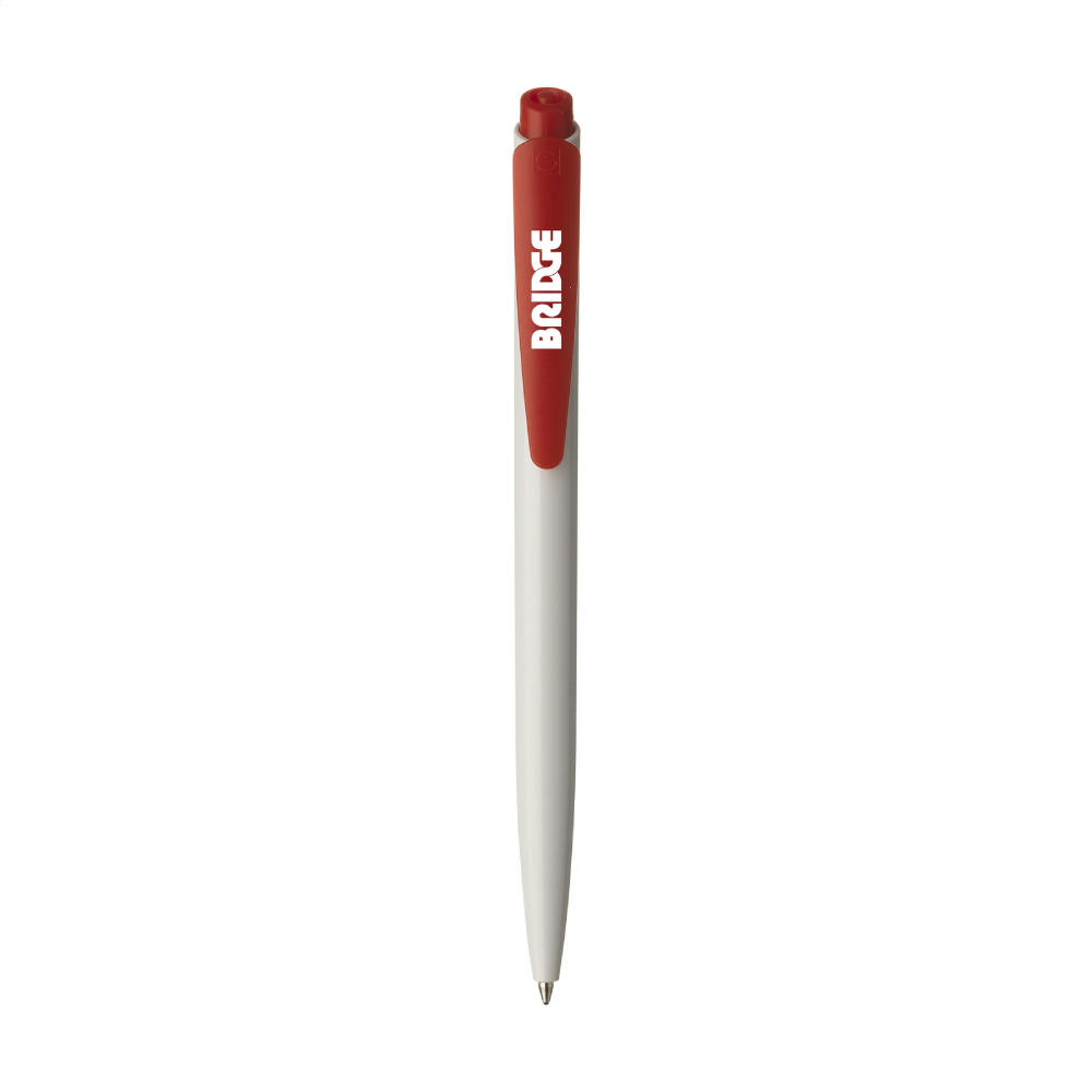 Blauschreibender Kugelschreiber der Marke Senator® in einem zeitlosen Design mit poliertem Gehäuse und großzügigem, farbigen Clip/Druckknopf. Made in Germany.
