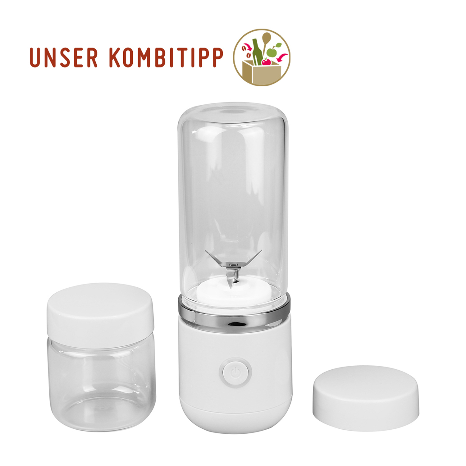 Säfte, Smoothies und Shakes schmecken frisch zubereitet einfach am Besten. Mit Smooth2Go haben Sie einen kleinen, mobilen Mixer immer da, wo Sie ihn gerade brauchen - inklusive tollem Rezeptheft. Dank dem passenden, mitgelieferten Schraubdeckel wird der Tumbler aus Echtglas nach dem Mixen im Handumdrehen zum praktischen Cup-to-go. Perfekt geeignet für Picknicks, Ausflüge oder Parties. Mit 18.000 Umdrehungen pro Minute, Kindersicherung und leistungsstarkem, wiederaufladbarem Akku steht einem mobilen Frischegenuss nichts mehr im Wege.