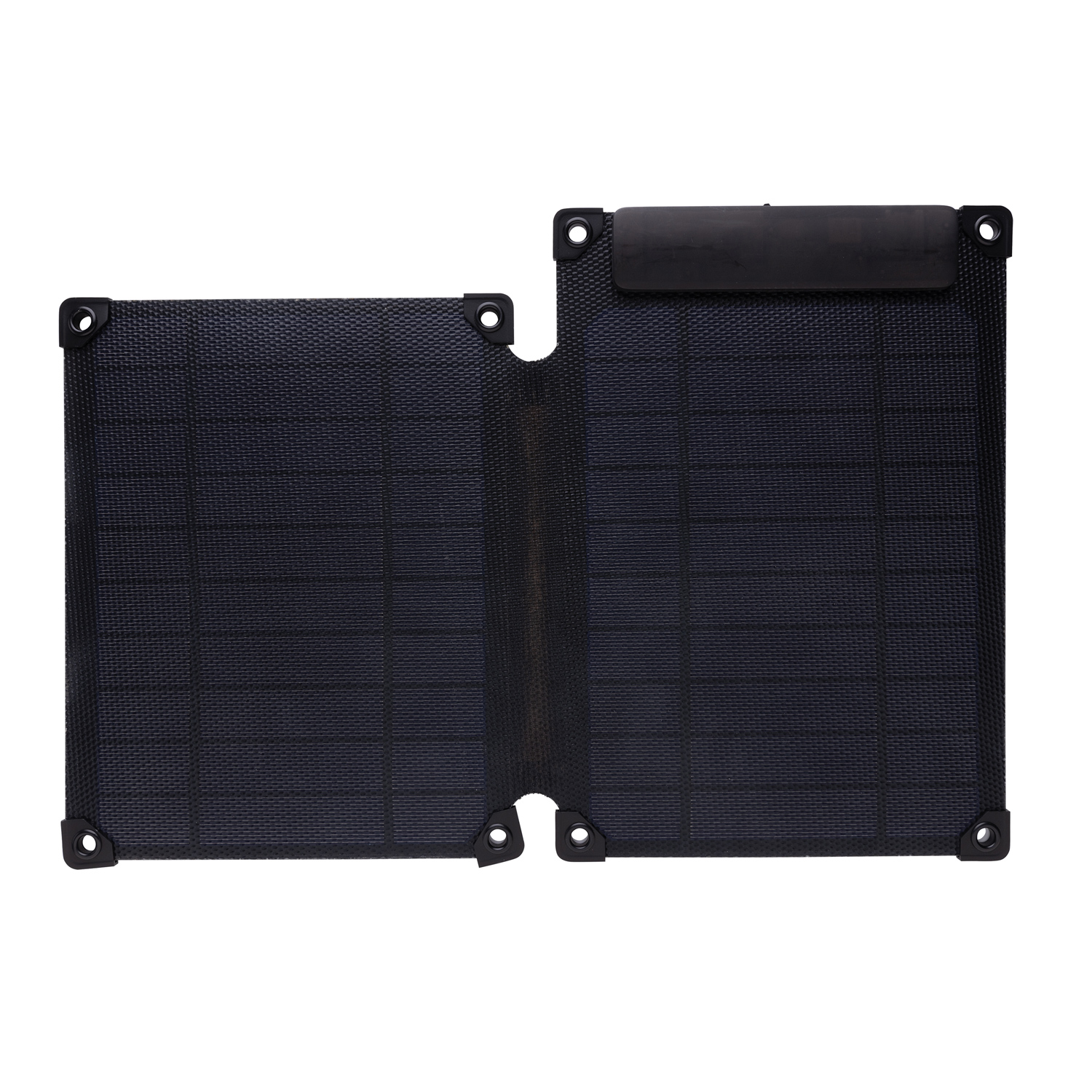 10W doppelt faltbares Solarpanel zum Aufladen mobiler Geräte. Das Panel verwendet hochwertige monokristalline Solarzellen mit einer Umwandlungsrate von 21%. Mit USB-A- und Typc-C-Ausgang (max. 5V/1A) sowie einer Anzeige der Ladegeschwindigkeit. Aufladegeschwindigkeit Solar: 5V/2000 mA. Mit integrierter Standfunktion, um die Solarzellen in einem optimalen Winkel zu verwenden. Wasserdicht nach IPX 6.