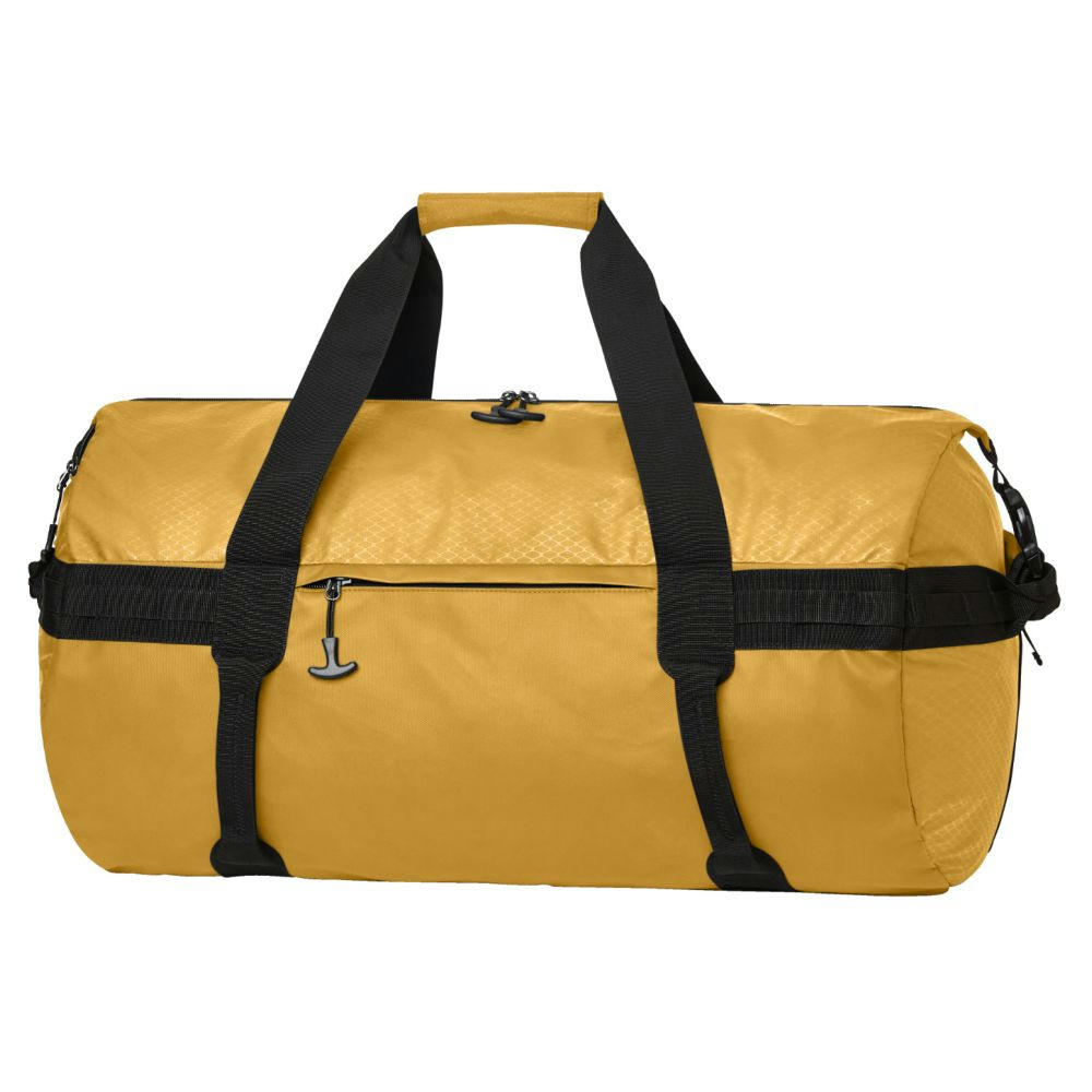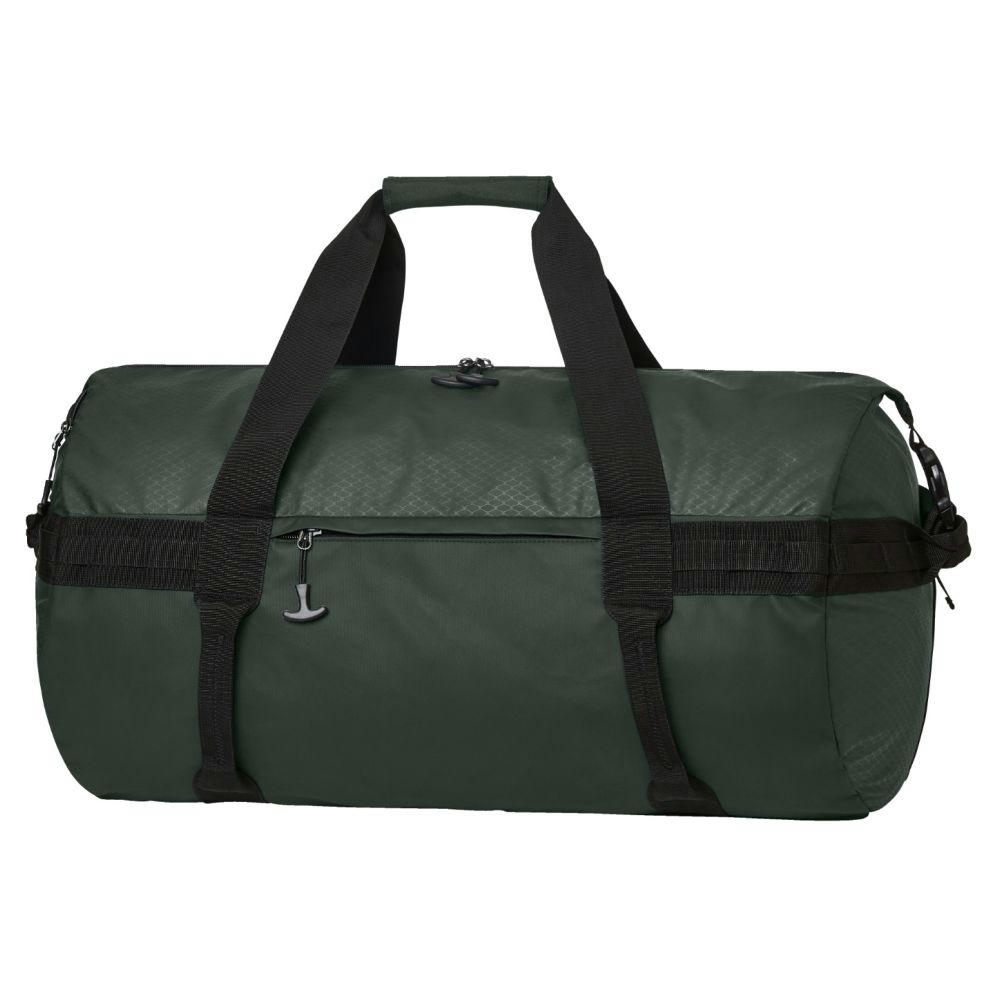 komfortable Sport-Reisetasche mit Rucksackfunktion; geräumiges Hauptfach mit 2-Wege-Reißverschluss und seitlichen Steckverschlüssen; seitliches Reißverschlussfach; Reißverschluss-Vortasche; umlaufendem Funktions- Schlaufenband; diverse Handgriffe; Tragegriffe und versteckte, gepolsterte und längenverstellbare Schultergurte