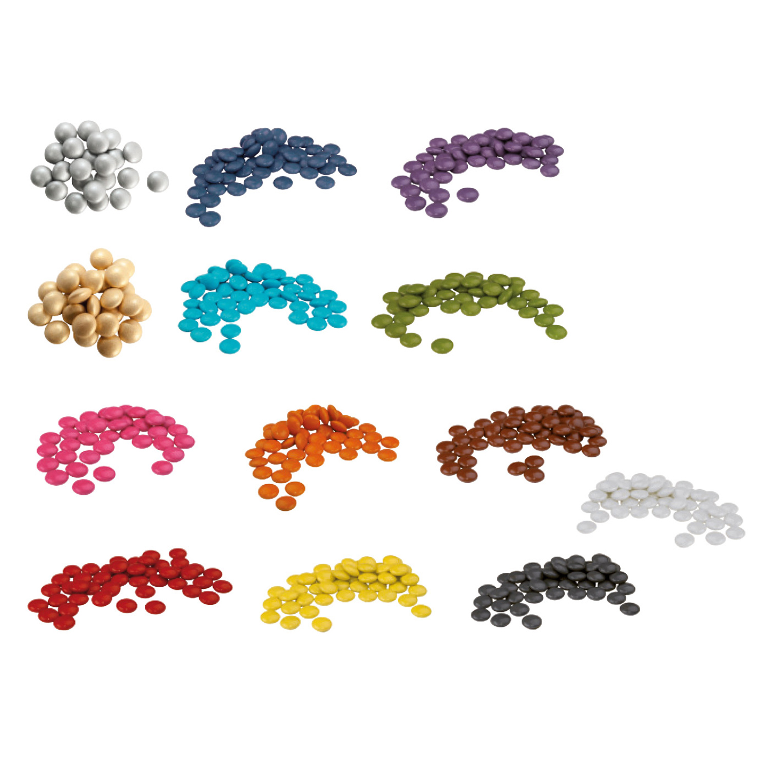 Kleine, quadratische Box mit Dispenser. Mögliche Füllungen A: Salmiak-Splitter, Mint-Pastillen zuckerfrei (VEGAN!), Schoko-Konfetti, Traubenzucker-Pastillen (VEGAN!) oder Schoko-Linsen farblich sortiert (verfügbare Farben: schwarz, grün, lila, türkis, blau, orange, weiß, pink, gelb und rot). Mögliche Füllungen B: Schoko-Linsen in gold, Schoko-Linsen VEGAN oder Schoko-Goldsternchen Inhalt: max. 20 g Haltbarkeit: ca. 12 – 24 Monate (je nach Füllung).