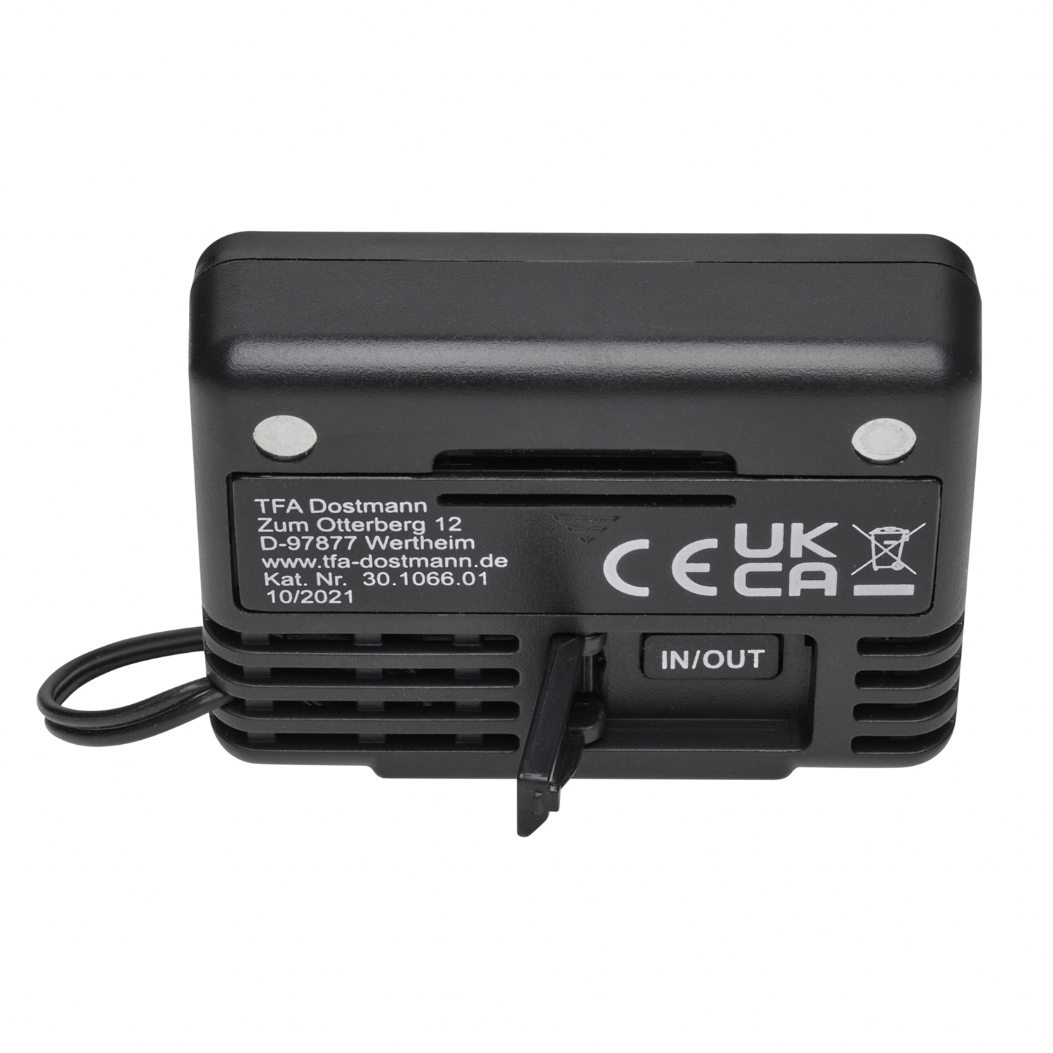 Zur Messung der Innentemperatur und Außentemperatur (über wasserdichten Kabelfühler, ca. 3m), Anzeige manuell umschaltbar oder automatisch wechselnd, Max.-Min.-Funktion, klein und kompakt, mit Befestigungsmagnet und Ständer (ausklappbar), schwarz
