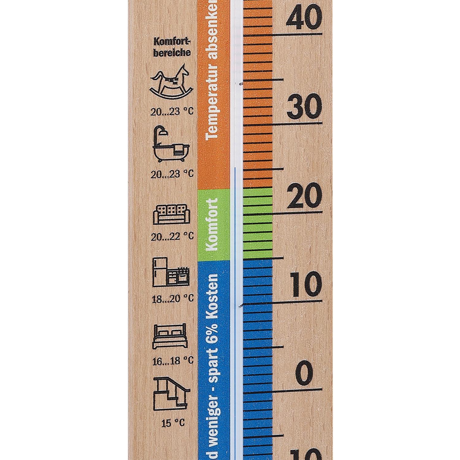 Energiespar-Thermometer zur Überwachung der Raumtemperatur, mit Tipps zum Energiesparen, Buche massiv, hergestellt in Deutschland.