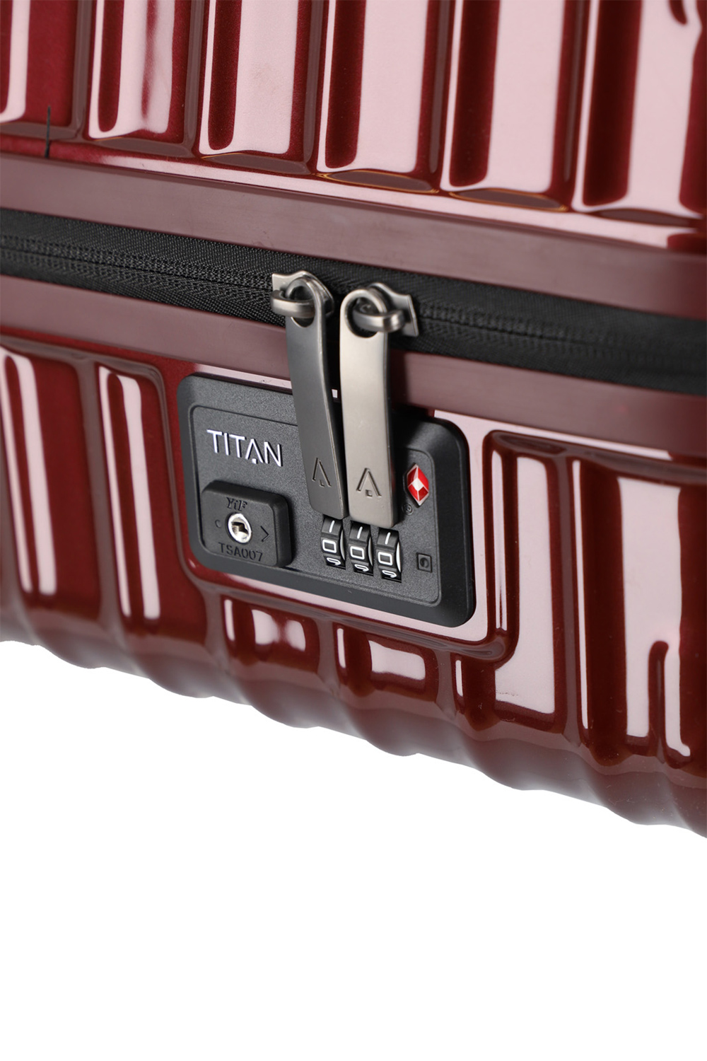 Mit komfortablem Tragegriff. Große, versenkte 6 cm TITAN Doppelrollen – besonders geräuscharm. TSA LOCK® Kombinationsschloss, hochwertiges Innenfutter aus recyceltem Polyester. Markante Schutzecken, zwei Oberflächenstrukturen „Flash“ und „Matt´´. Innen zusätzliche Reißverschlussfächer und Packgurte auf beiden Seiten. In Hamburg designt, im Bayerischen Wald von Hand vollendet.