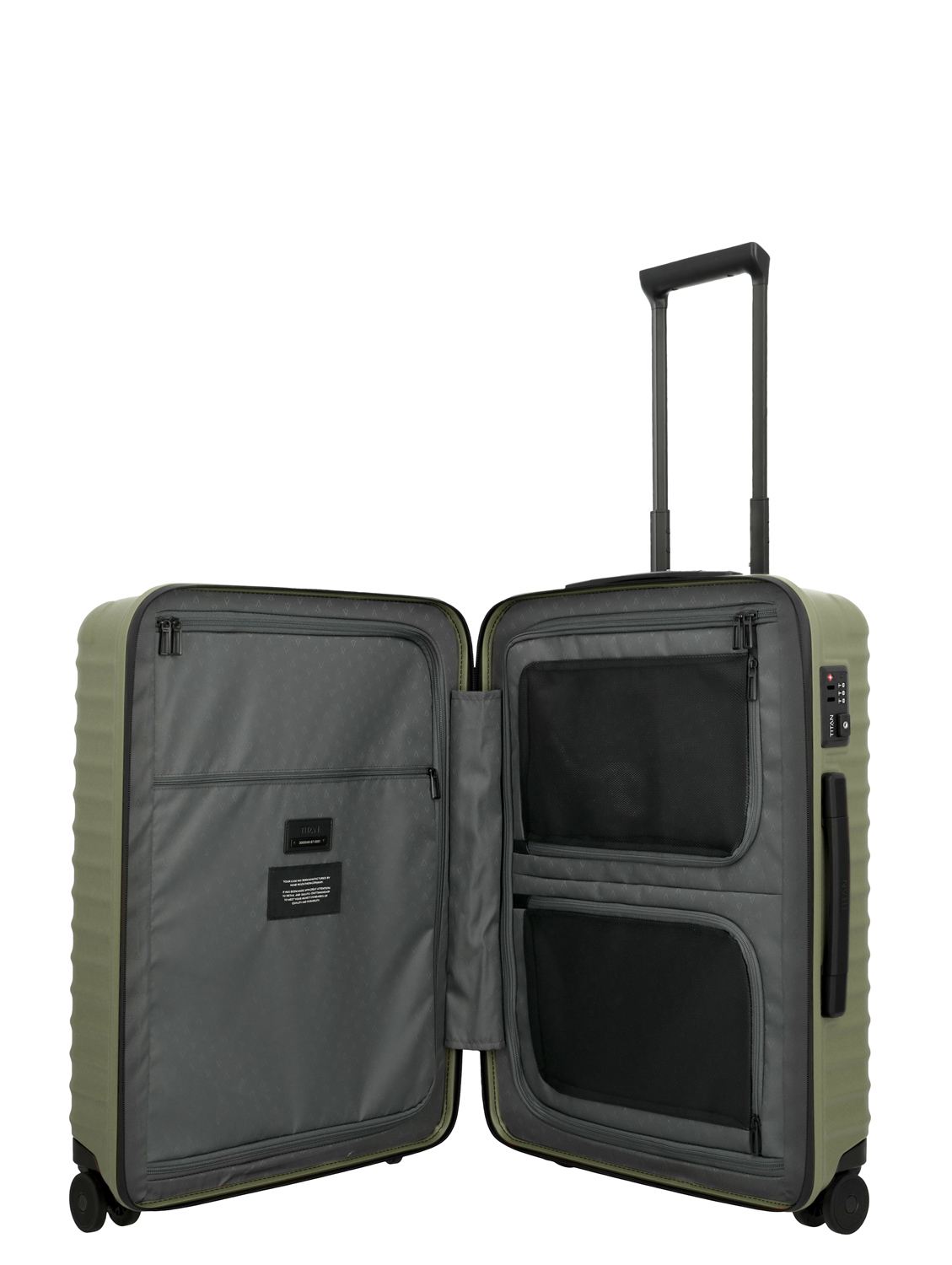 Hochwertiges Design mit höchster Qualität.Speziell entwickelte, besonders matte Oberflächenstruktur für maximale Kratzresistenz. 100 % Polycarbonat. Zweifach verstärkte Schutzecken, für noch mehr Stabilität. Leichtgängiger, wasserabweisender Reißverschluss. Innenfutter aus recyceltem Polyester mit hochwertiger Jacquard-Webung. Intelligente Innenaufteilung mit bis zu drei zusätzlichen Fächern. Herausnehmbare Packgurte in praktischer Y-Shape. Produktspezifische Seriennummer. Ergonomisch geformte Handgriffe. Große, überdurchschnittlich leise Doppelrollen. Made in Germany.