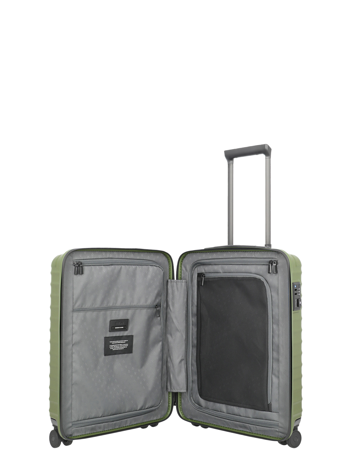 Hochwertiges Design mit höchster Qualität.Speziell entwickelte, besonders matte Oberflächenstruktur für maximale Kratzresistenz. 100 % Polycarbonat. Zweifach verstärkte Schutzecken, für noch mehr Stabilität. Leichtgängiger, wasserabweisender Reißverschluss. Innenfutter aus recyceltem Polyester mit hochwertiger Jacquard-Webung. Intelligente Innenaufteilung mit bis zu drei zusätzlichen Fächern. Herausnehmbare Packgurte in praktischer Y-Shape. Produktspezifische Seriennummer. Ergonomisch geformte Handgriffe. Große, überdurchschnittlich leise Doppelrollen. Made in Germany.