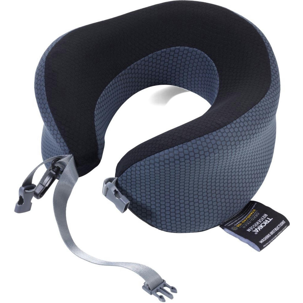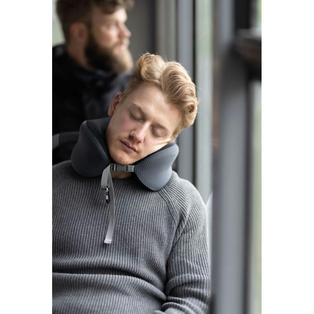 Nackenkissen in Kompressions-Tasche, Kissen platzsparend einrollbar (mit Klick-Verschluss), Memory Foam (Memory-Schaum): dauerhaft formstabil, behält ursprüngliche Nackenkissen-Form nach Einrollen, für Zug, Auto, Flugzeug, Sofa, Bezug abnehmbar/waschbar, stabilisiert/entlastet den Nacken- und Schulterbereich durch optimale Stützung des Kopfes, STANDARD 100 by OEKO-TEX®, Polyester.
