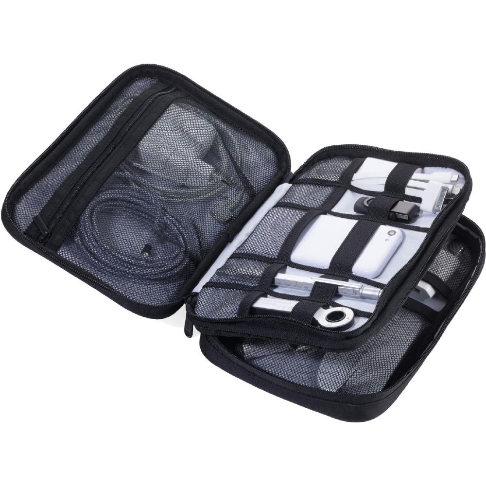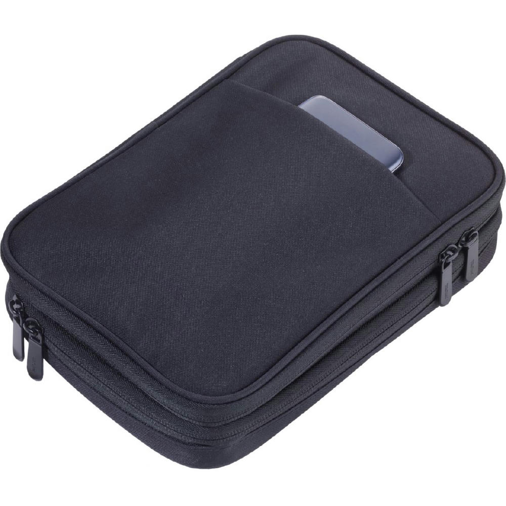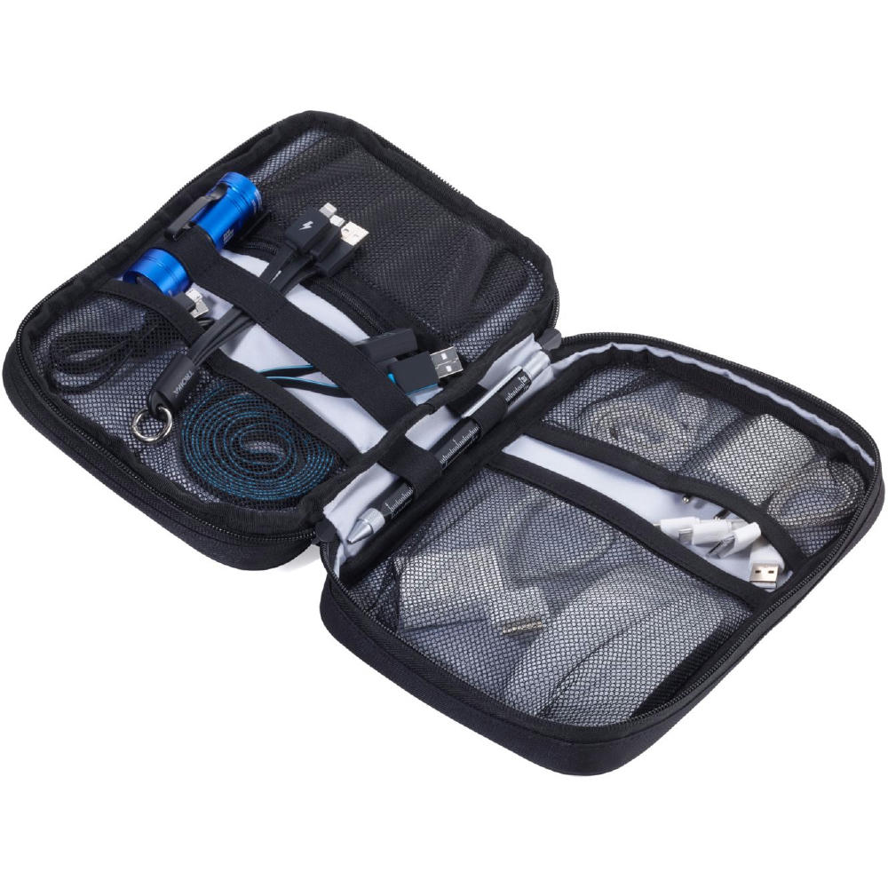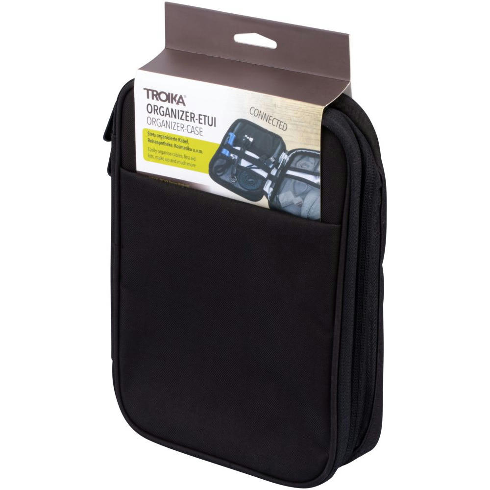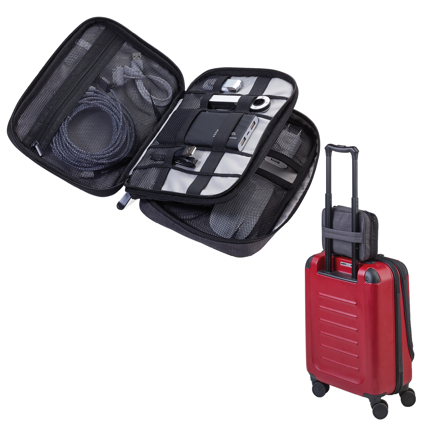 Organizer-Tasche mit 2 Reißverschlussfächern, 2 Innenfächer mit Netztaschen und Elastikbändern für Zubehör (Every Day Carry), Stiftschaufe, 1 Außenfach, Schlaufe zur Befestigung am Trolley.