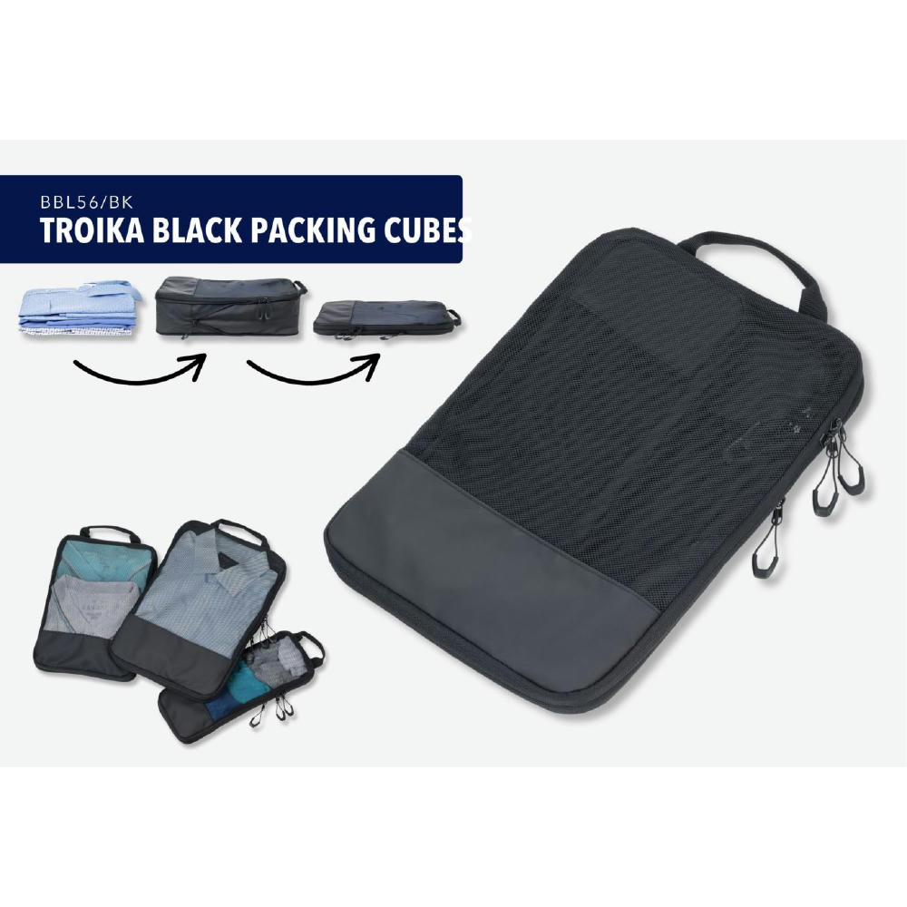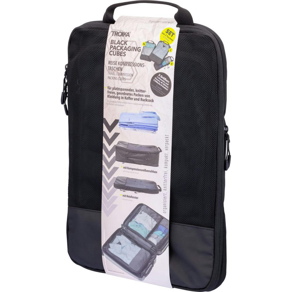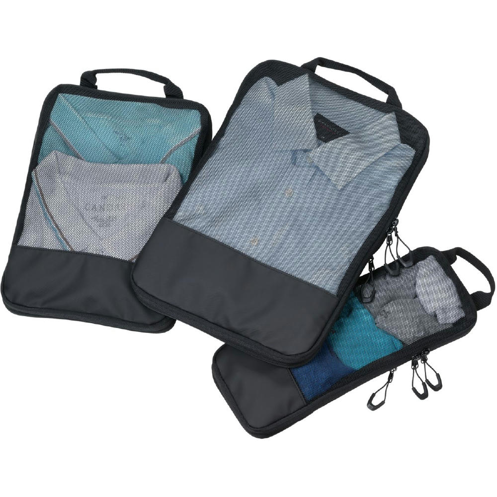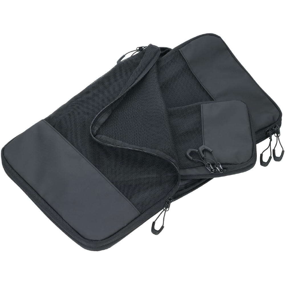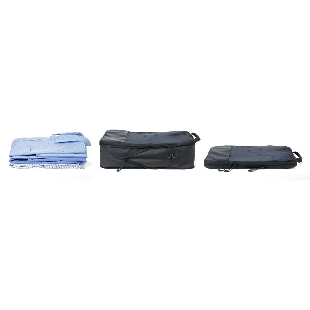 Dreiteilig für verschiedene Kleidungsstücke: Größe L für Hemden & Hosen, Größe M für Shirts und Größe S für Socken und Wäsche – platzsparend, geordnet und knitterfrei. Durch verschließen des Netzfach-Reißverschlusses wird der Inhalt vollständig komprimiert.