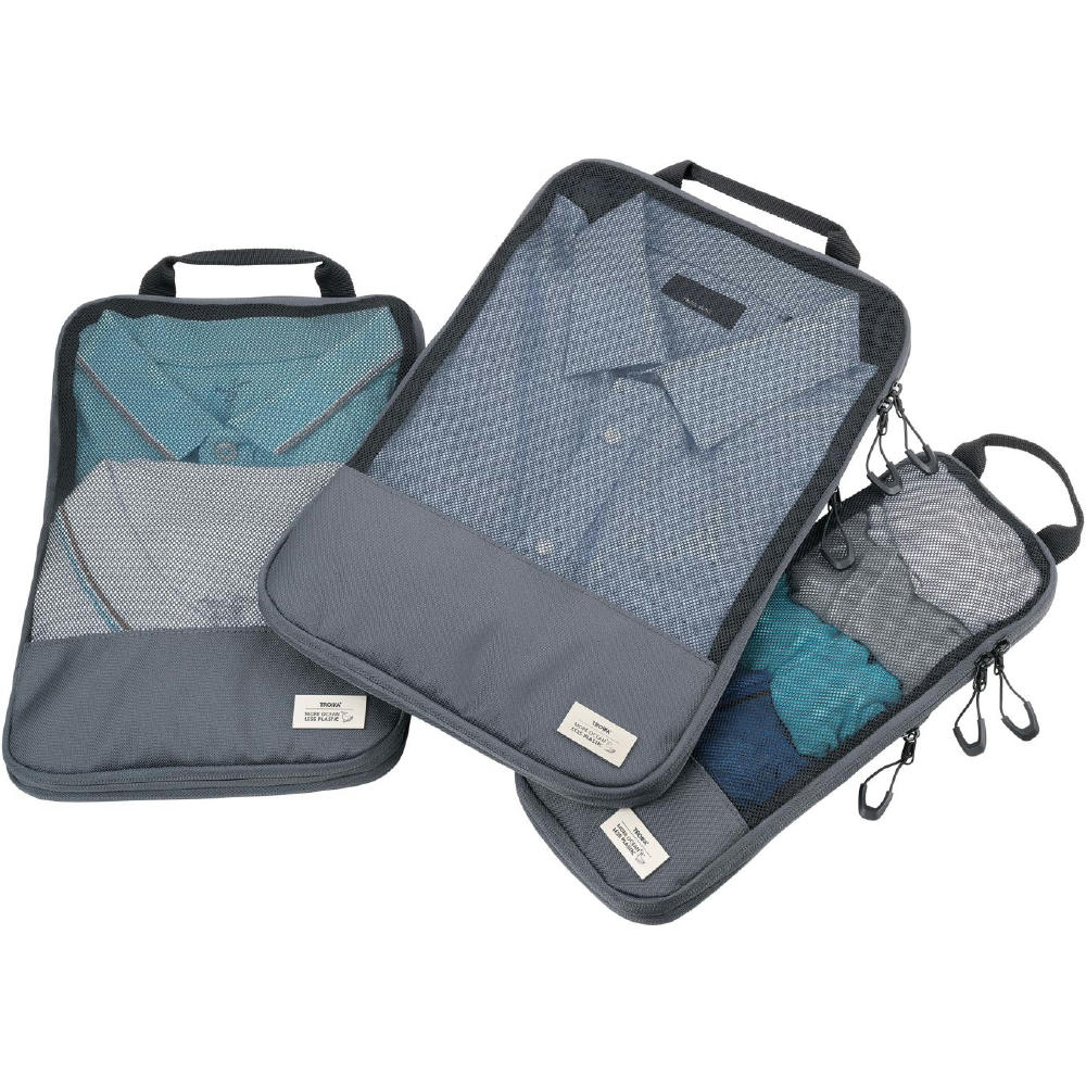 Dreiteilig für verschiedene Kleidungsstücke: Größe L für Hemden & Hosen, Größe M für Shirts und Größe S für Socken und Wäsche – für platzsparendes, geordnetes und knitterfreies Packen von Kleidung in Koffer & Rucksack. Durch Verschließen des Netzfach-Reißverschlusses wird der Inhalt vollständig komprimiert.