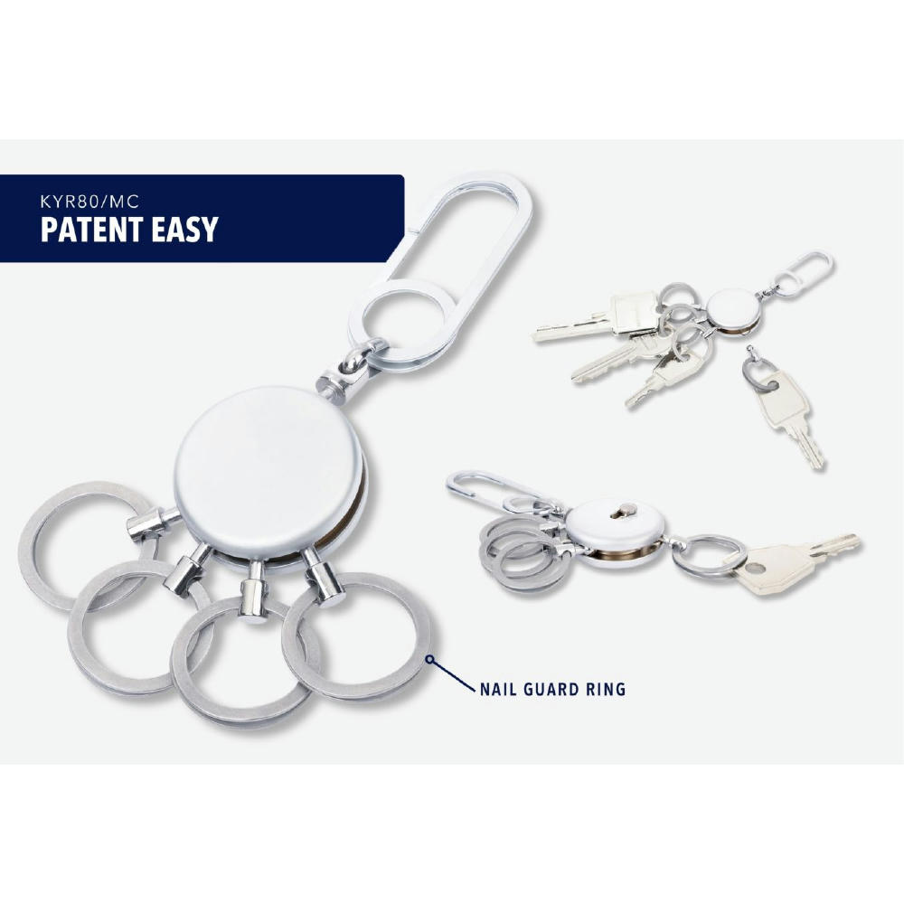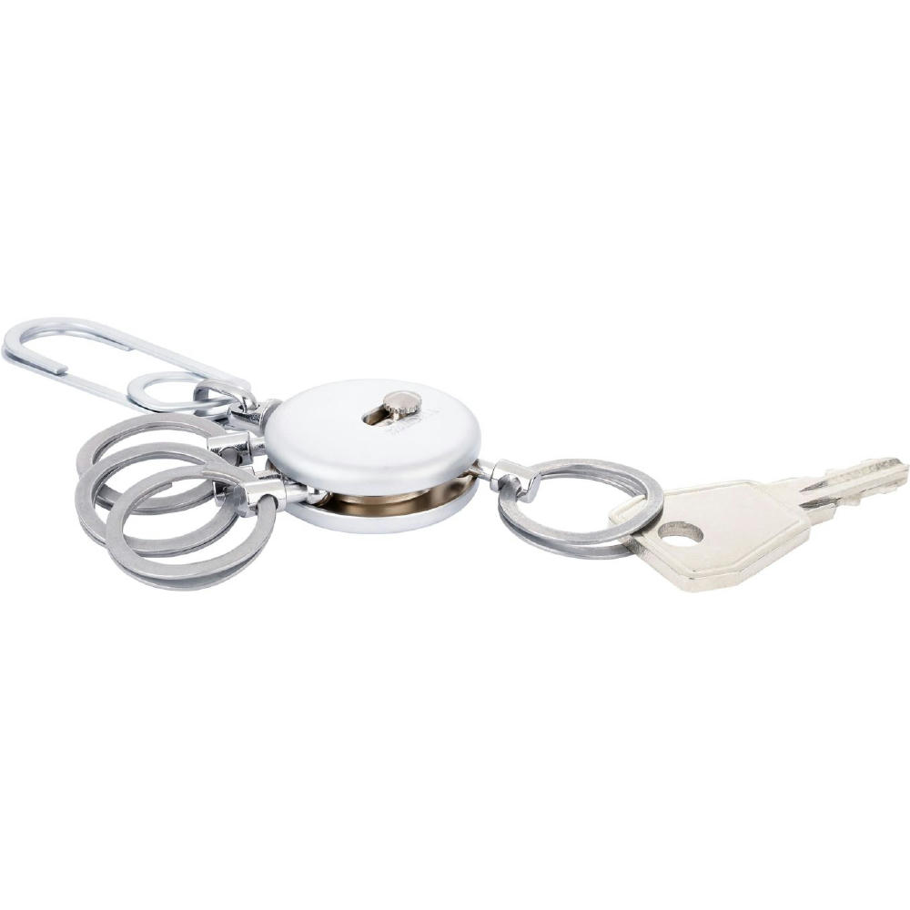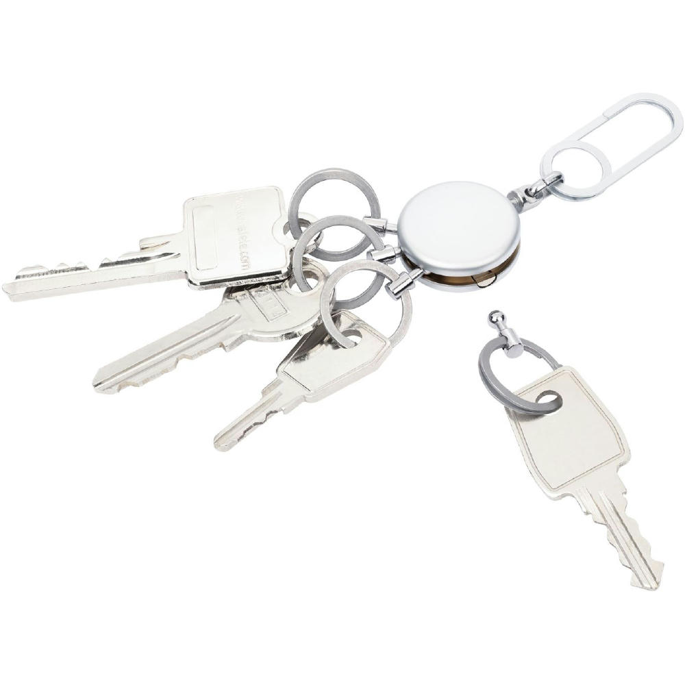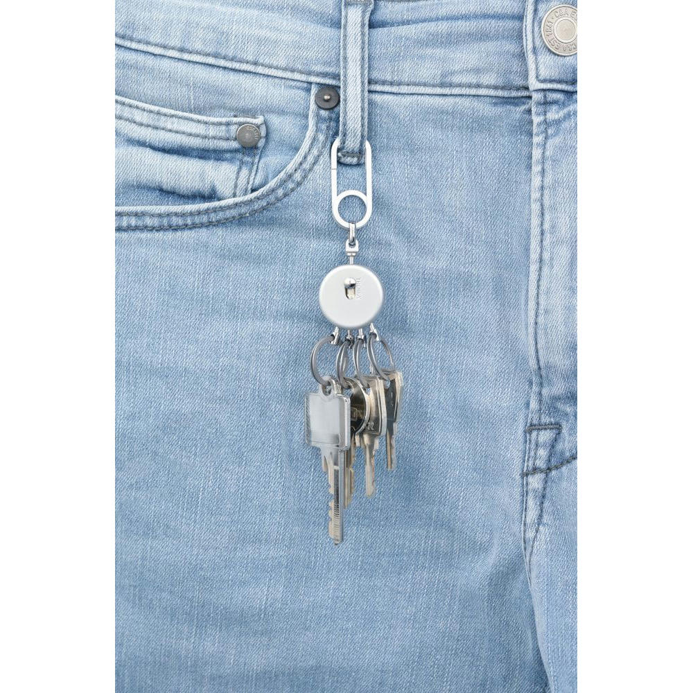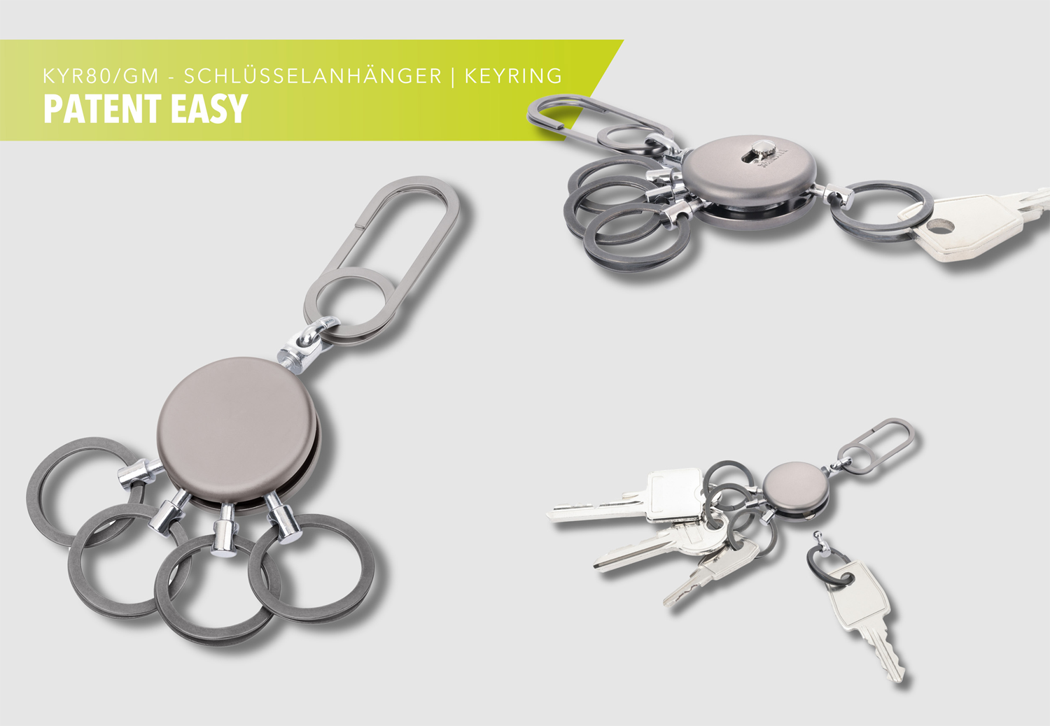 Schlüsselanhänger, rund, inkl. Karabinerhaken, 4 ausklinkbare Ringe, schnelles & einfaches Anbringen der Schlüssel dank patentiertem Öffnungsmechanismus (TROIKA NAIL GUARD), Messing, Metall, verchromt, matt, silberfarben