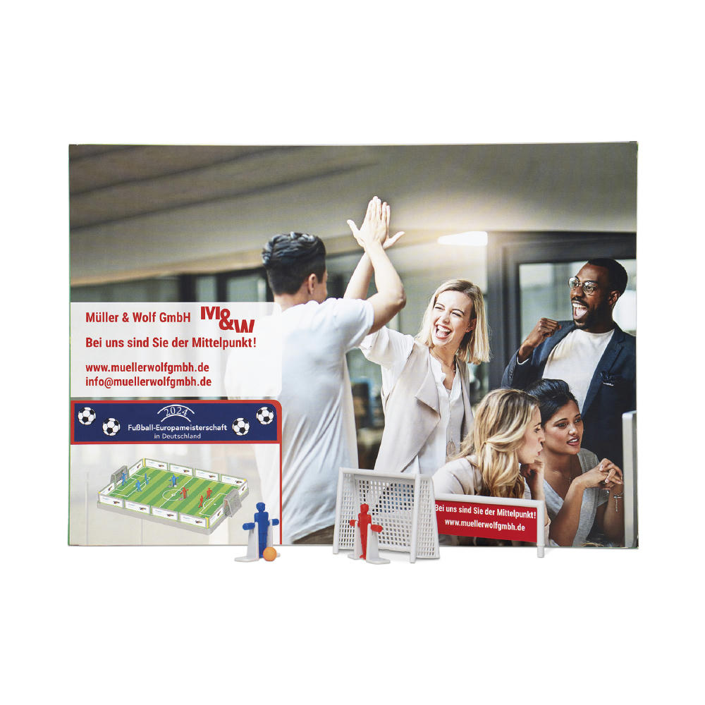 Bausatz mit insgesamt 51 Teilen, die einfach zusammengesteckt werden. Inklusive individuell gestalteter 4-c Umverpackung. Inklusive 4-c. Druck auf den 12 Werbebannern (bis zu 4 verschiedene Motive). (Druckkosten 120,-- pauschal bei gestellten Daten) Made in Germany Optional im Einzelversandkarton, für Versand als Maxibrief