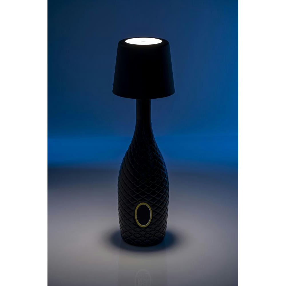 Dimmbare Tischleuchte mit teilbarem Mast sowie Flaschenhalsadapter. IP44 Spritzwasserschutz für Innen und Außen. 200 Lumen, 3W, 2600mAh Batterie.