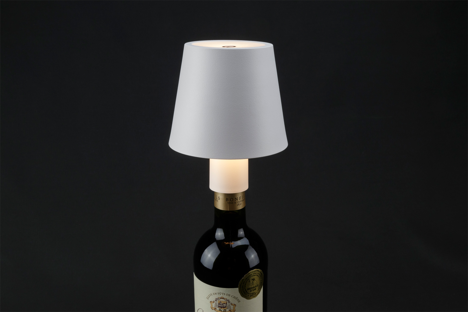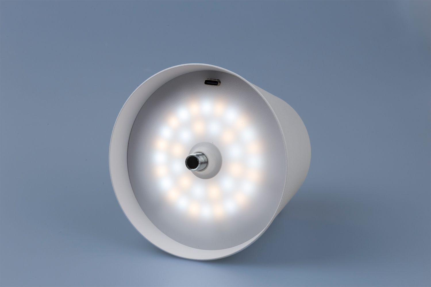 Mit dimmbarem Licht in drei Farbtemperaturen und 1.800-mAh-Akku, für drinnen und draußen. IP20-Schutz macht sie auch für Reisen und Gartenpartys geeignet. Der LED-Schirm kann mittels Aufsatzes zusätzlich auch auf viele handelsübliche Flaschenhälse montiert werden. Typ-C-Anschluss.
