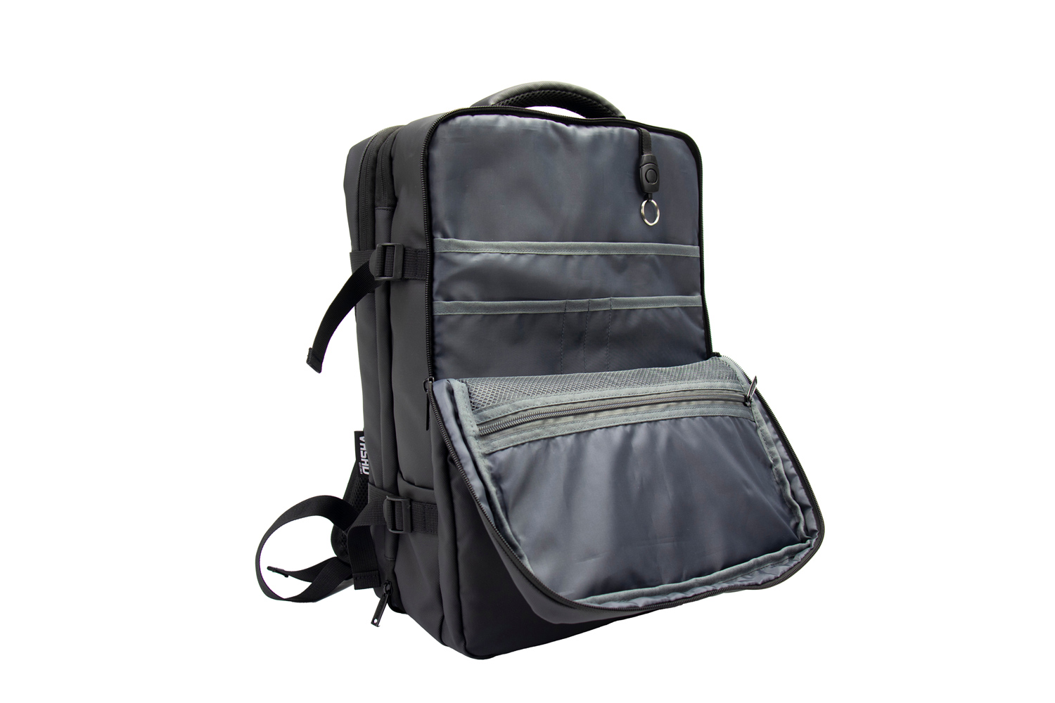 Der perfekte Rucksack für Reisen und Arbeit. Passt unter den Flugzeugsitz und kann somit kostenlos als Handgepäck mitgenommen werden. Gepolstertes Laptop-Fach (17 Zoll) , drei große Fächer sowie Organizer-Taschen lassen sich für einen schnellen Zugriff leicht öffnen. Weiche Schultergurte, Tragegriffe und ein Trolleygurt. Futter aus recycelten Plastikflaschen.