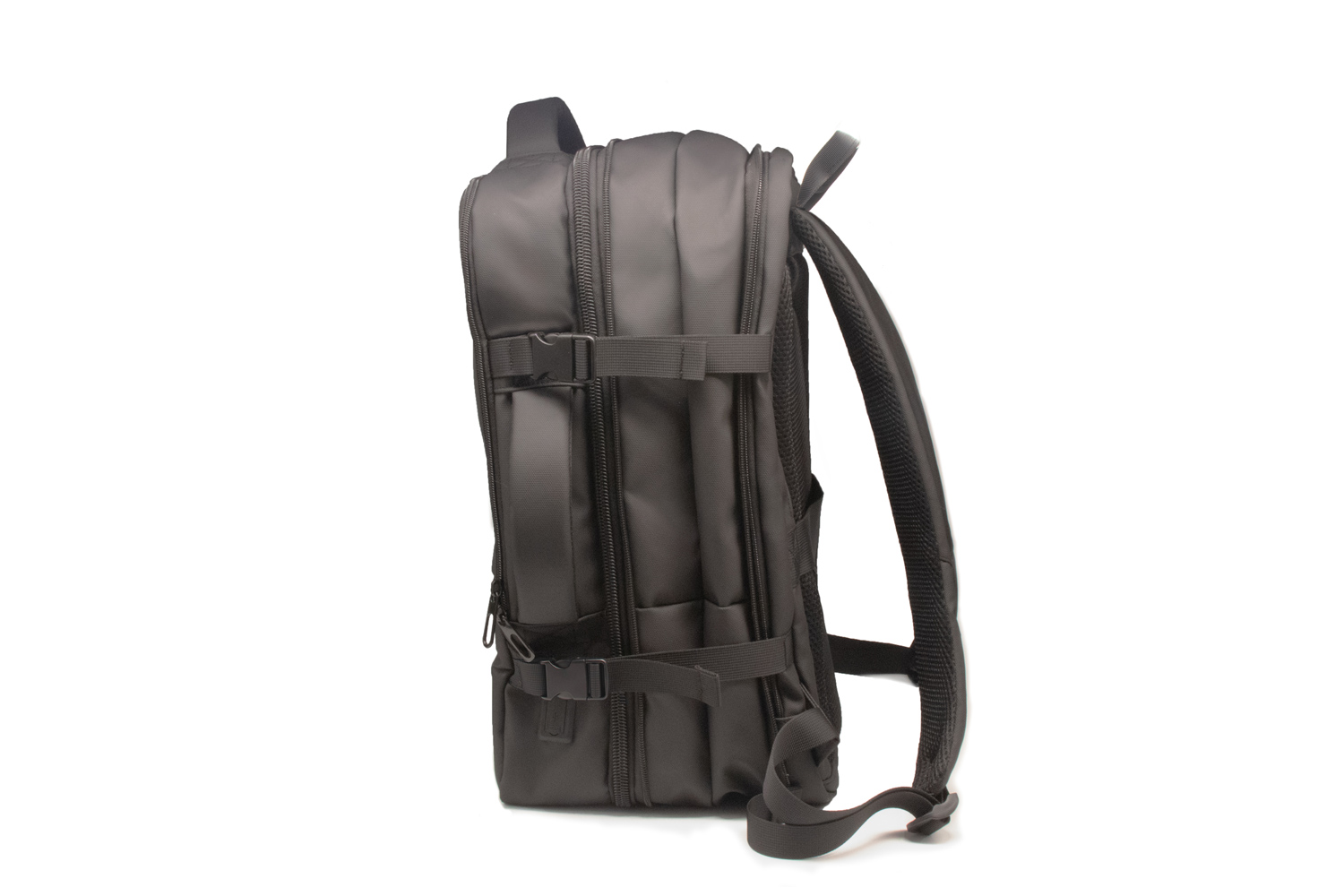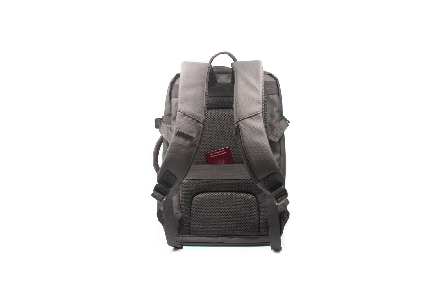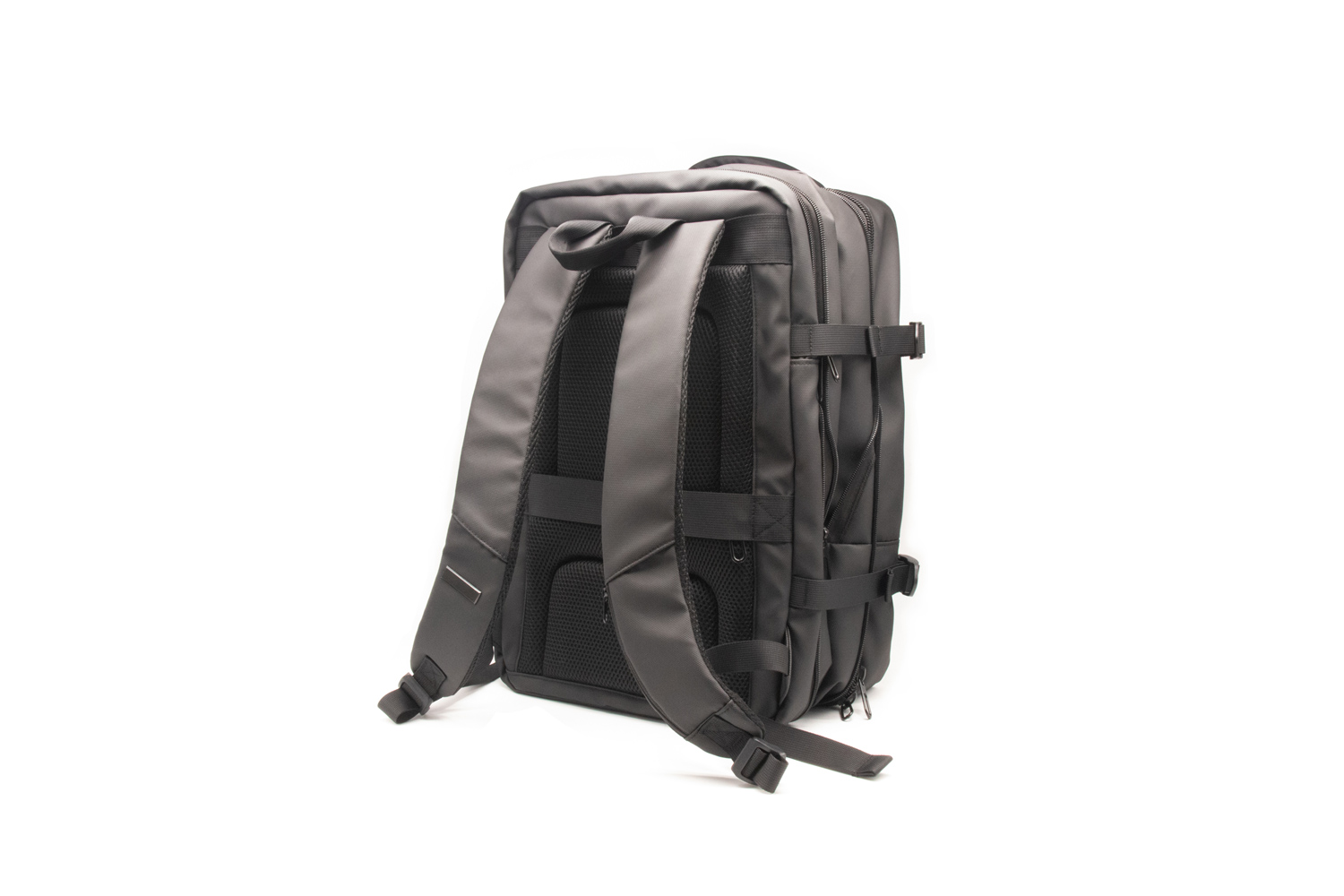 Mit seinem integrierten, wasserdichten Vakuumsystem reduziert er das Volumen Ihrer Kleidung und ermöglicht es Ihnen, den Platz zu optimieren und gleichzeitig Ordnung zu halten. Seine kompakte Größe entspricht den Handgepäckbestimmungen der meisten Fluggesellschaften und macht ihn zum idealen Begleiter auf Reisen. Der Rucksack besteht aus recyceltem PU- und PET-Material und verfügt über ein gepolstertes Laptopfach, zwei Außentaschen, eine gesicherte Rückentasche und eine Vliestasche (55 × 59 cm). Für zusätzlichen Komfort ist der Rucksack mit einem internen USB-A/Typ-C Anschluss für die Verbindung mit einer Powerbank und externen USB-A/Typ-C Anschlüssen für den Anschluss eines Ladekabels ausgestattet.