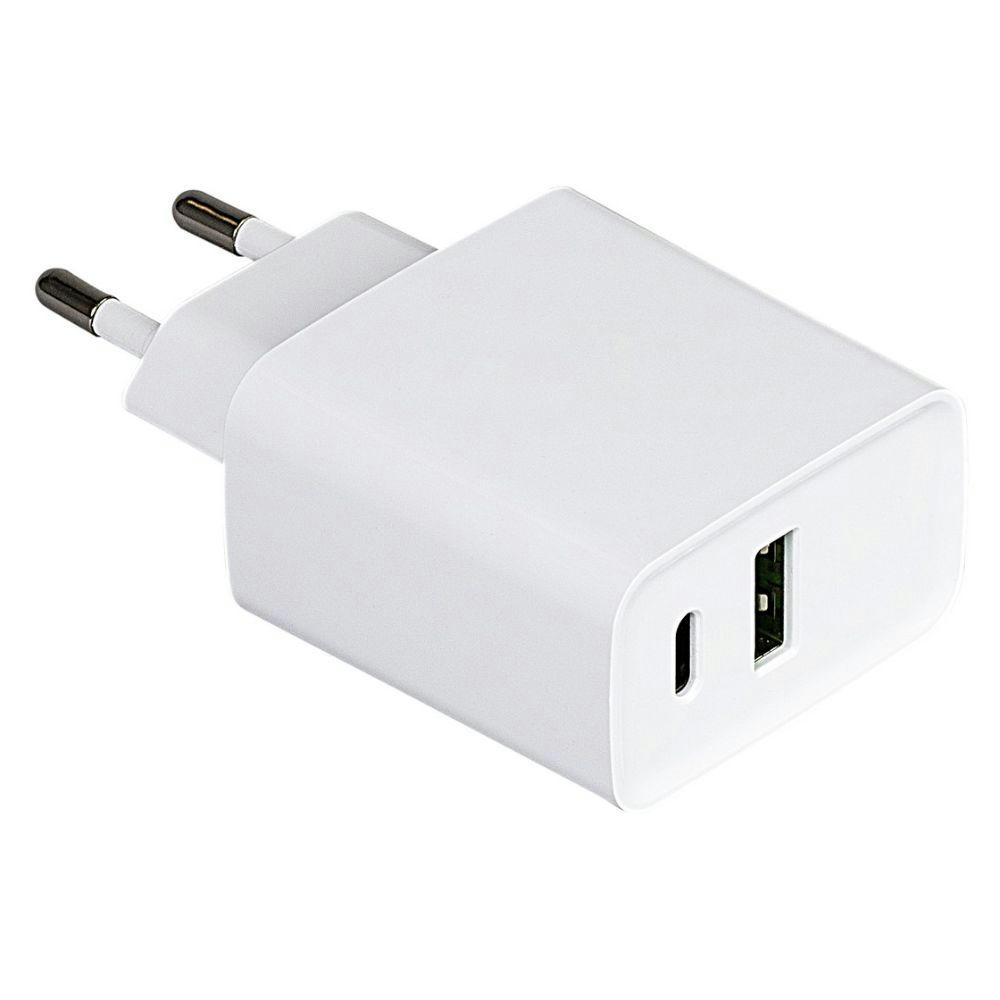 Wandladegerät mit 20 W Gesamtleistung (QC3.0 Quickcharge und PD 20 W), Input: 100–240 V, 50/60Hz 0,5A, Output USB-A: 5V/3A, 9V/2A, 12V/1,5A (18W max.), Output: Type-C 5V/3A, 9V/2,22A, 12V/1,66A (20W max.), USB-A + Type-C kombiniert: 17W max., Input: 100–240 V, 50/60Hz 0,5A, Output USB-A: 5V/3A, 9V/2A, 12V/1,66A (20W max.), Output: Type-C 5V/3A, 9V/2,22A, 12V/1,66A (20W max.), USB-A + Type-C kombiniert: 17W max.