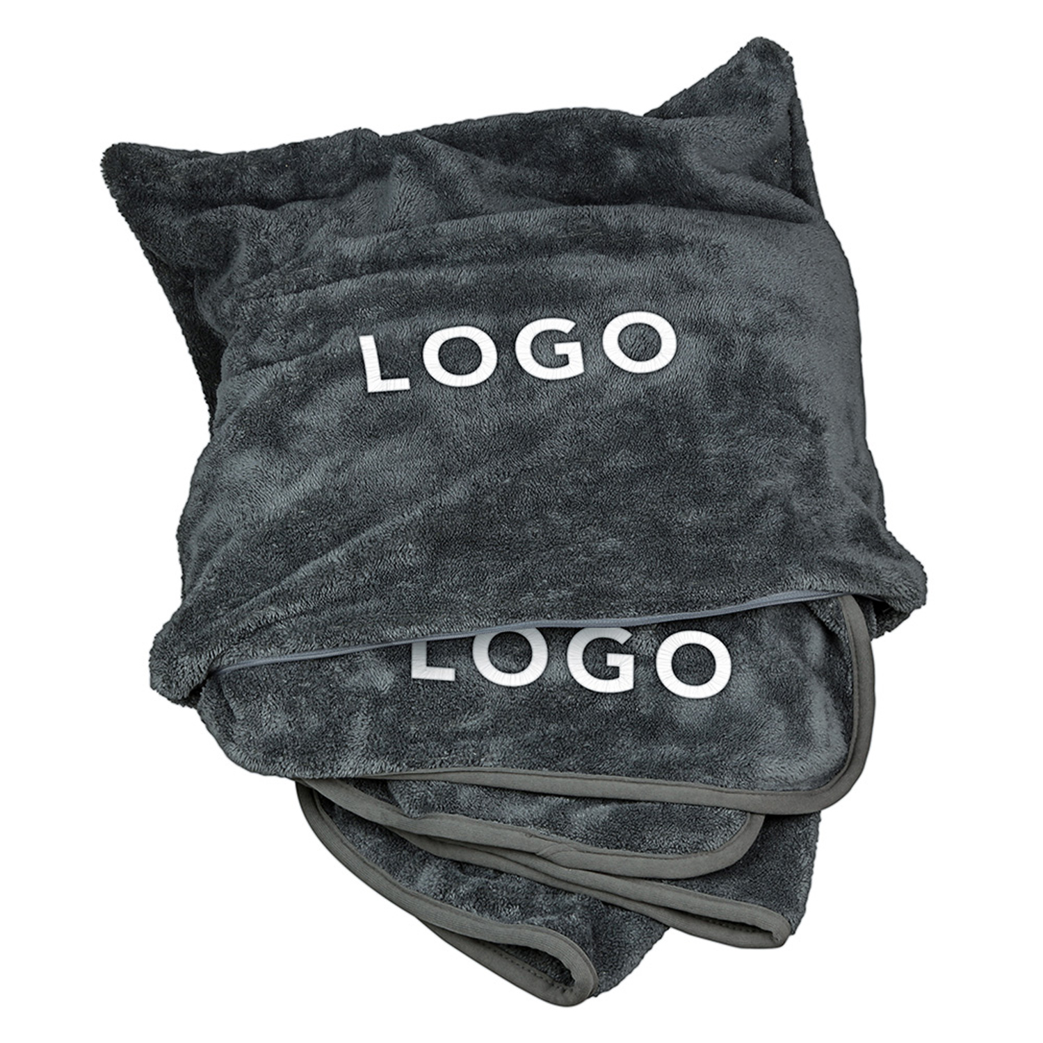 Kombination aus Kissen und Kuscheldecke inkl. 2x Logo in 10 x 10 cm (Kissen und Decke). Coral-Fleece 280g/m² (Teddy Plüsch) Öko-Tex Standard 100. Mindestmenge: 250 Stück und auf Wunsch in Ihrer Unternehmensfarbe nach Pantone lieferbar.