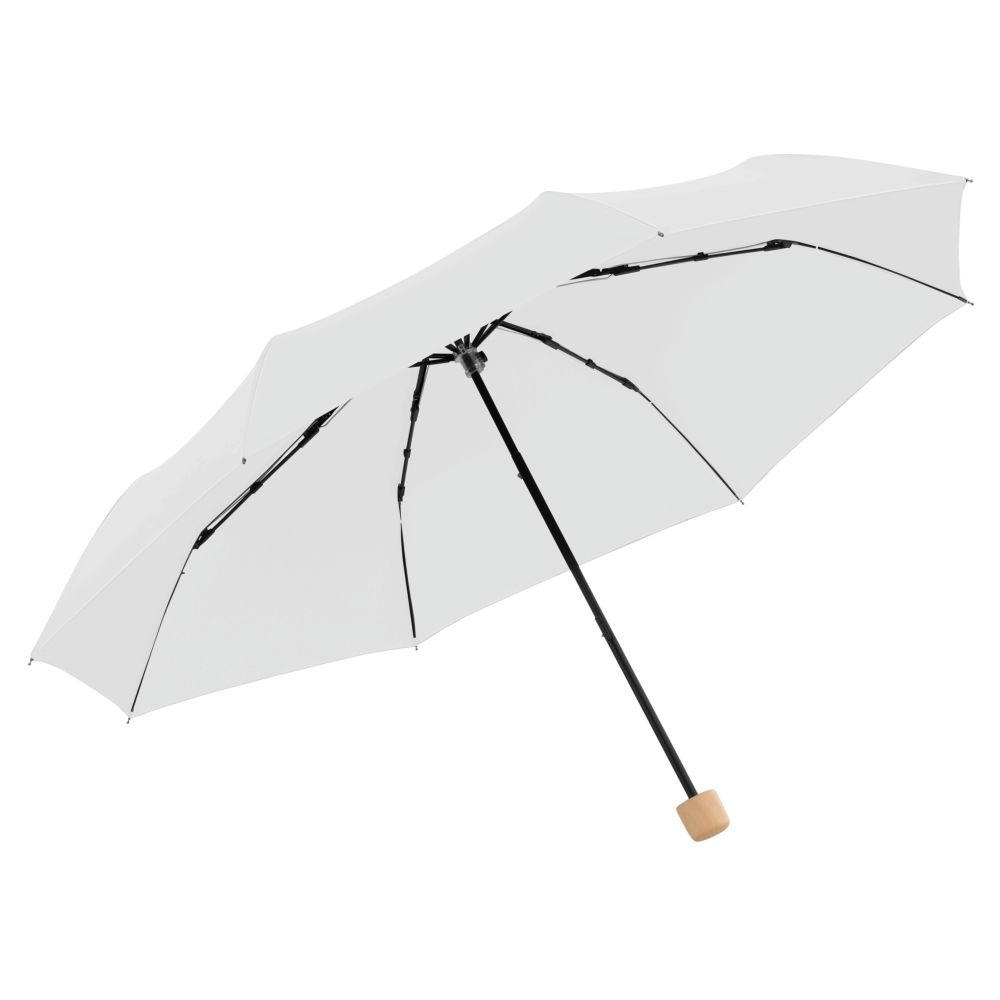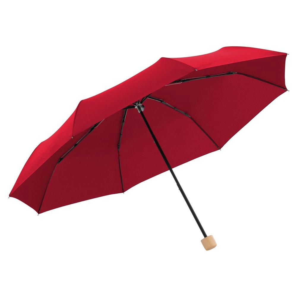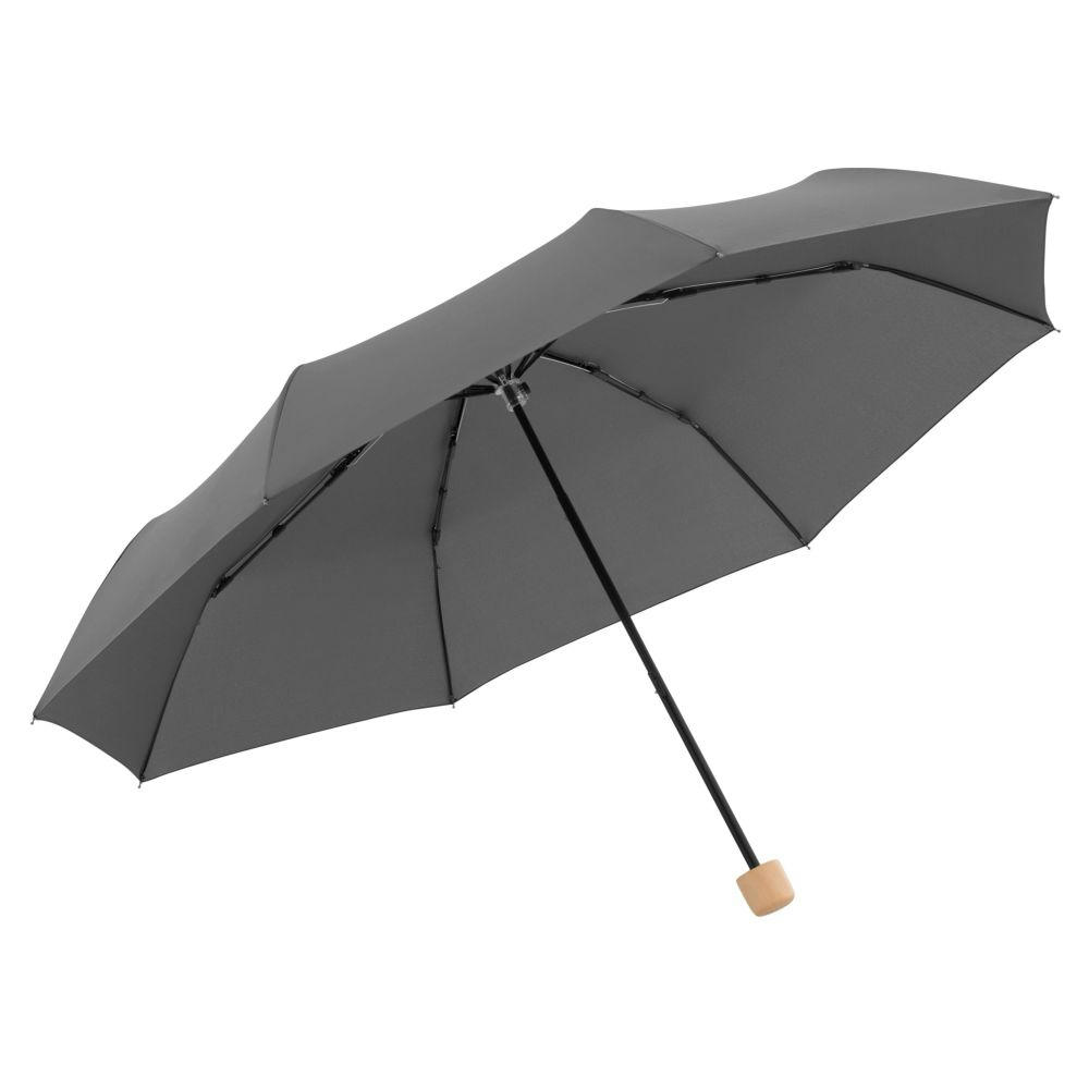 Nachhaltiger, PFC-freier, manueller Taschenschirm mit rPET-Bespannung und einem zertifiziertem Holzgriff aus nachhaltiger Forstwirtschaft, zu attraktiven Konditionen.