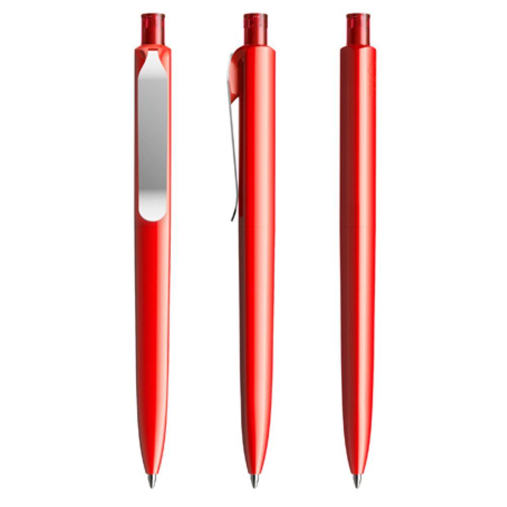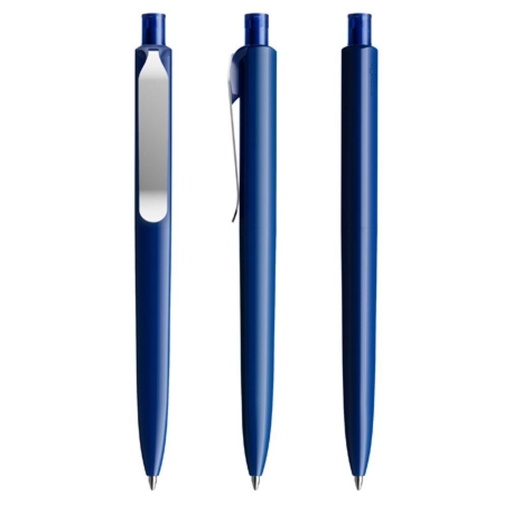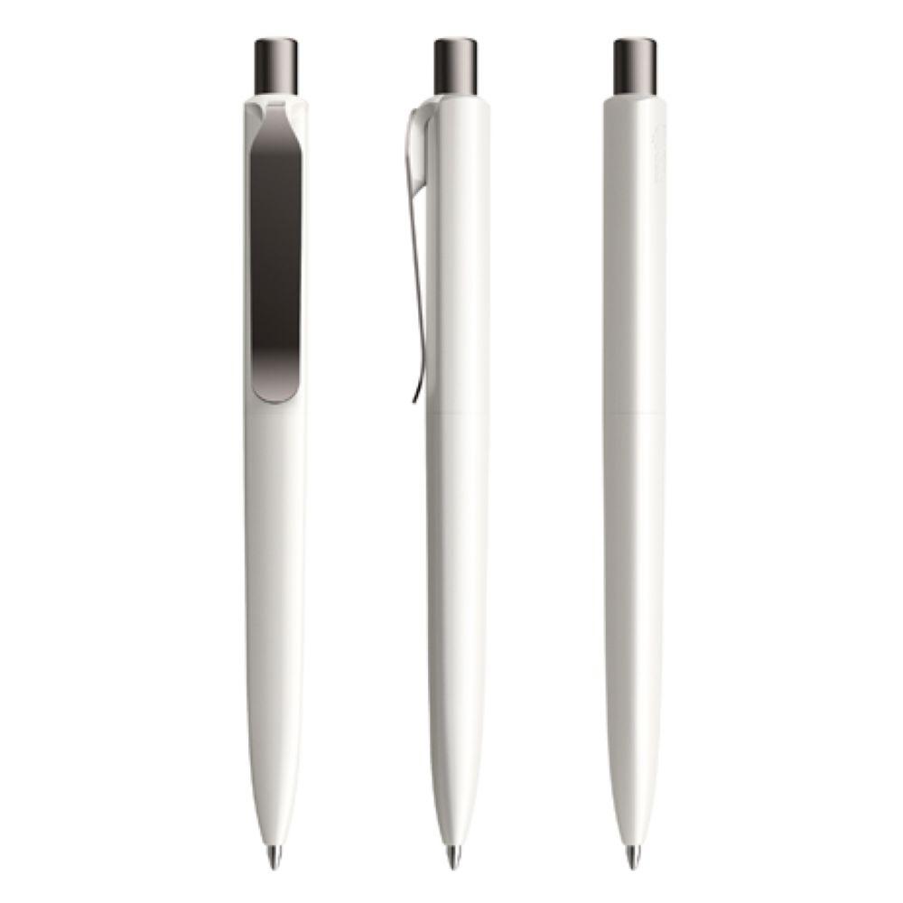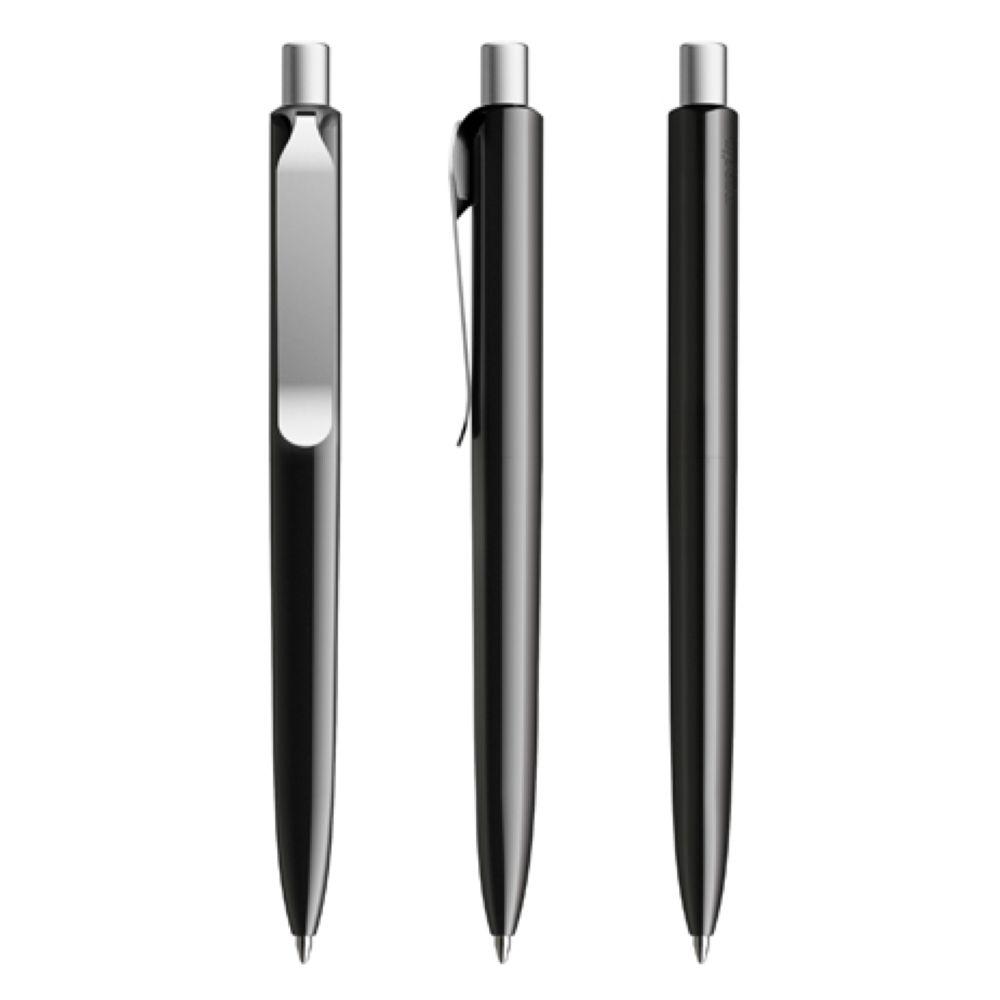 Die Ikone eines klassischen Schreibgerätes – auch mit Metall-Clip. Wertige Clip-Druckknopf-Kombinationen aus Metall machen den DS8 noch vielseitiger. Ein ausgewogener Material-Mix aus Metall und Kunststoff, der Marken gekonnt in Szene setzt. In der Ausführung mit vollfarben poliertem Gehäuse (PSP) lieferbar in fünf Standardfarben, hergestellt mit einem Rezyklatanteil von 100% (Schwarz und Weiß) oder 50% (alle anderen Farben), gekennzeichnet mit dem internationalen Recycling-Symbol. Sondergehäusefarben ab 5.000 Stück. Fünf Druckflächen für Werbeanbringungen stehen zur Verfügung. Die Standardausführung ist mit Silber satiniertem Clip ausgestattet. Als Option stehen Clips in galvanisiertem Schwarz oder Graphit zur Auswahl. Der Druckknopf ist aus Kunststoff. Ausgestattet mit der umweltfreundlichen auswechselbaren FLOATING BALL® lead free-Großraummine 1.0, Schreiblänge 5.000 m, Schreibfarbe Blau oder Schwarz.