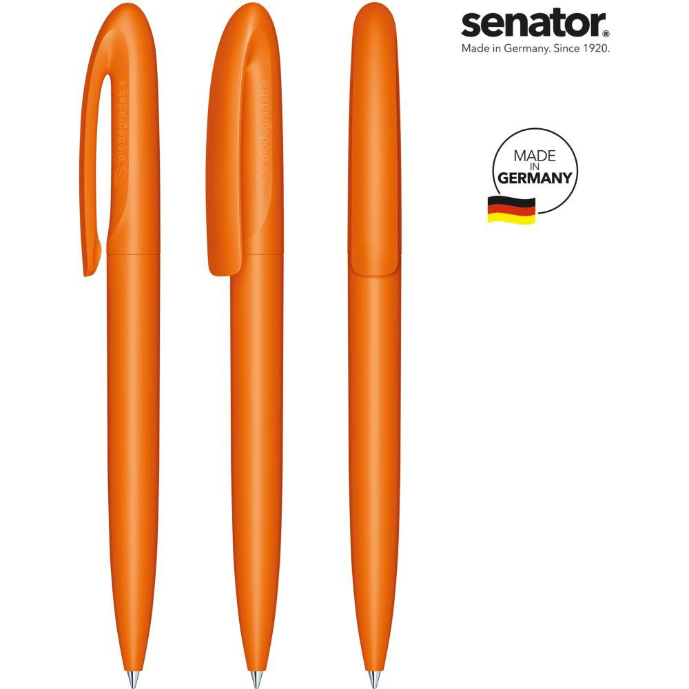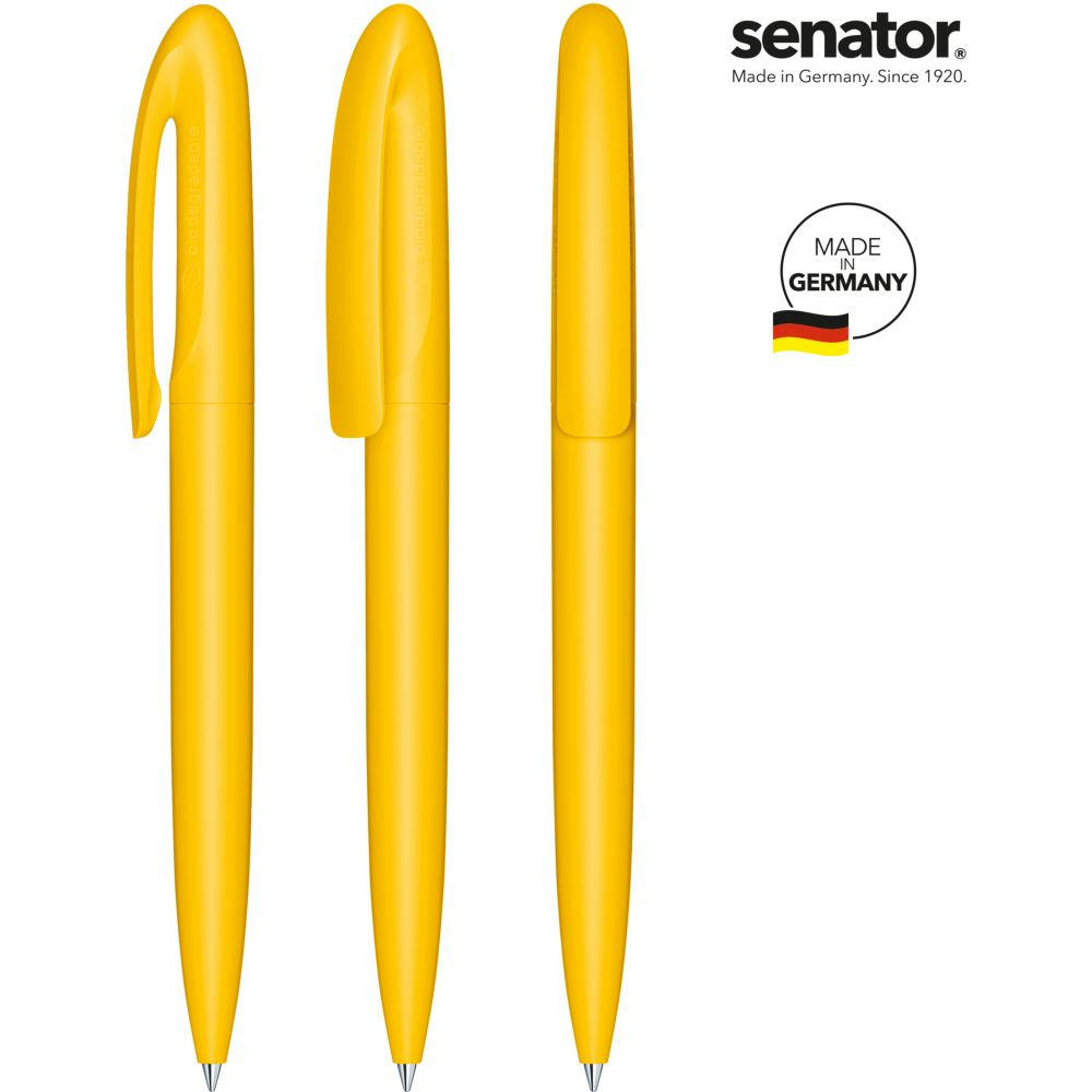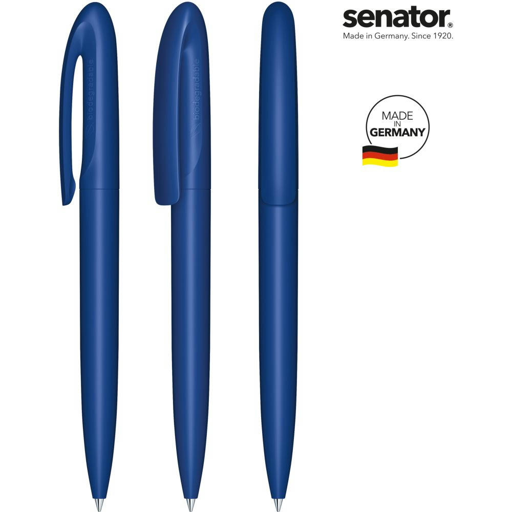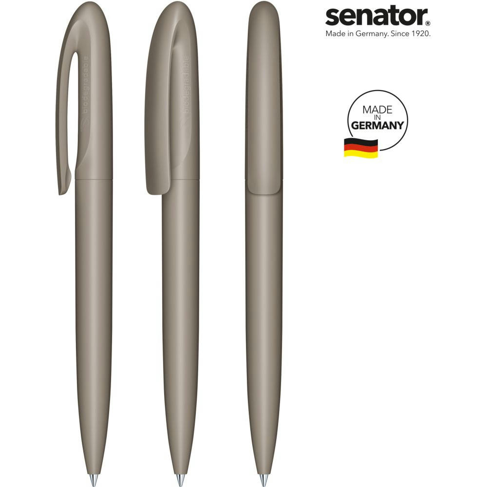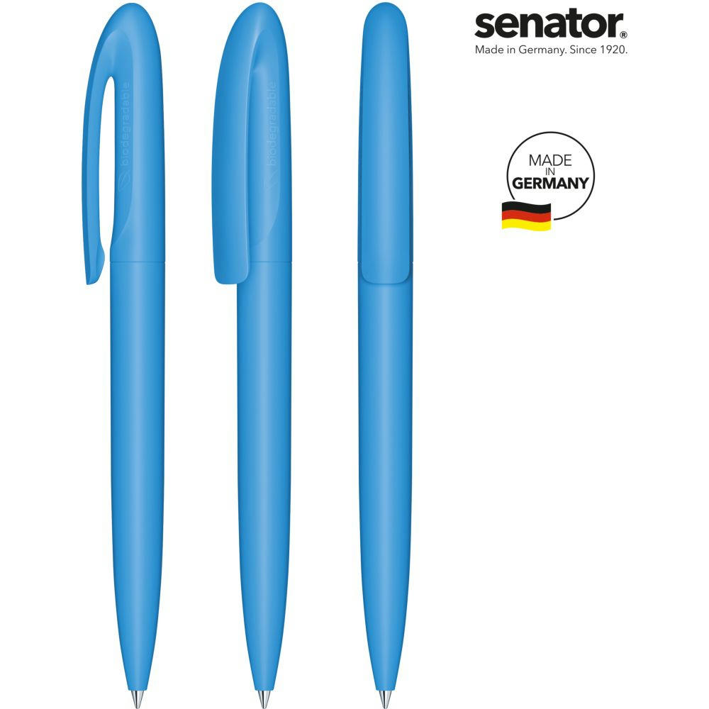 senator Skeye Bio Matt Drehkugelschreiber. Biokunststoff auf PLA-Basis mit einer matten Oberfläche. Made in Germany. Langlebige senator magic flow G2 Mine (1,0 mm), Schreiblänge bis zu 5000 m, Tintenfarbe: Blau. Option einer kostenlosen Ersatzmine unter minen.senator.com. Jeder Skeye Bio Kugelschreiber ist auf der Seite mit einer Kennzeichnung zum Biomaterial versehen.