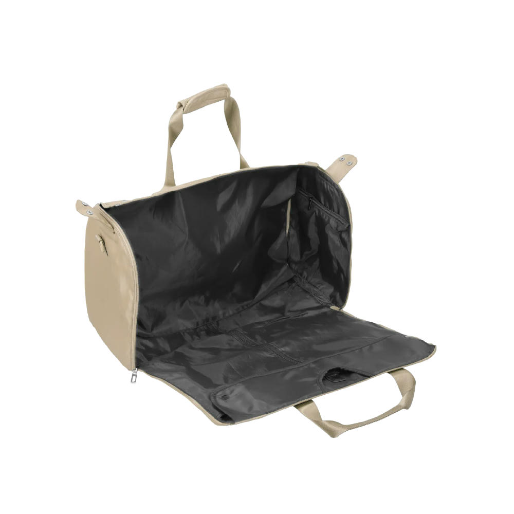 Der Kleidersack mit Reisetaschenfunktion ist ein cleveres 2‑in‑1‑Multitalent für unterwegs. Im kompakten Taschenmodus begleitet er dich bei jedem Trip – als stylischer Weekender mit großzügigem Hauptfach, Außentasche und verstellbarem Schultergurt. Mit wenigen Handgriffen lässt er sich dann in einen klassischen Kleidersack verwandeln: einfach aufklappen, Kleiderbügel einhängen – und Hemden oder Anzüge kommen faltenfrei ans Ziel.