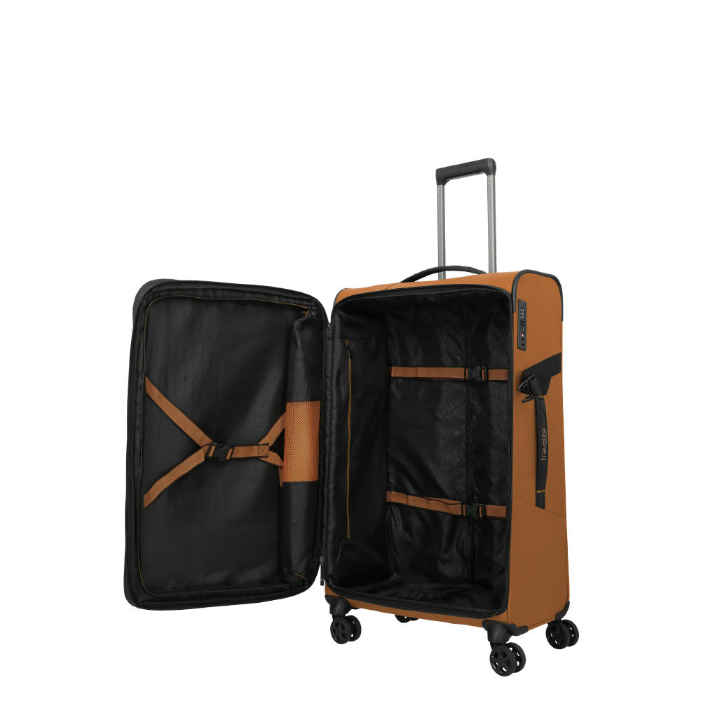 Material und Informationen: Außenmaterial Polyester Innenfutter PolyesterSchloss TSA-KombinationsschlossRollen 4 Doppelrollen Ausziehbare Teleskopstange arretierbares Leichtmetall-GestängeTragegriff ergonomische Oberhand- und Seitenhandgriffe und Bodengriff Separates Wäschefach JaGepolstertes Laptopfach NeinErweiterbar (Dehnfalte) Ja